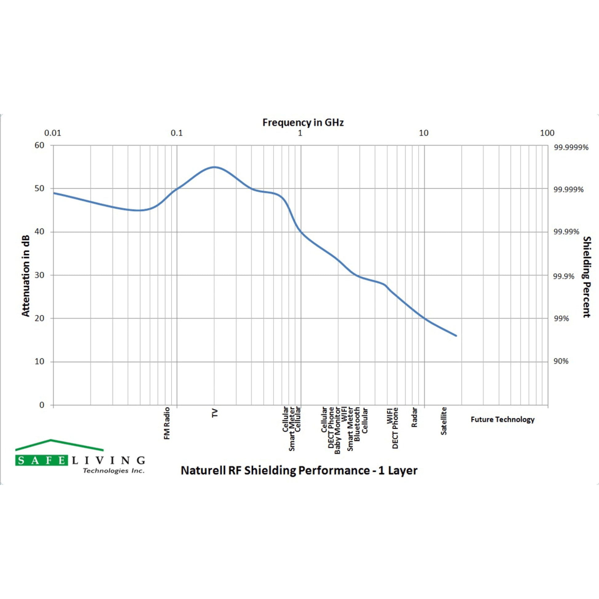 Swiss Shield Naturell premium cotton non conductive shielding fabric - radio frequency / microwave effectiveness of 99.99% or 40 dB at (1000 MHz / 1 GHz) and 99% effective up to (10,000 MHz / 10 GHz).