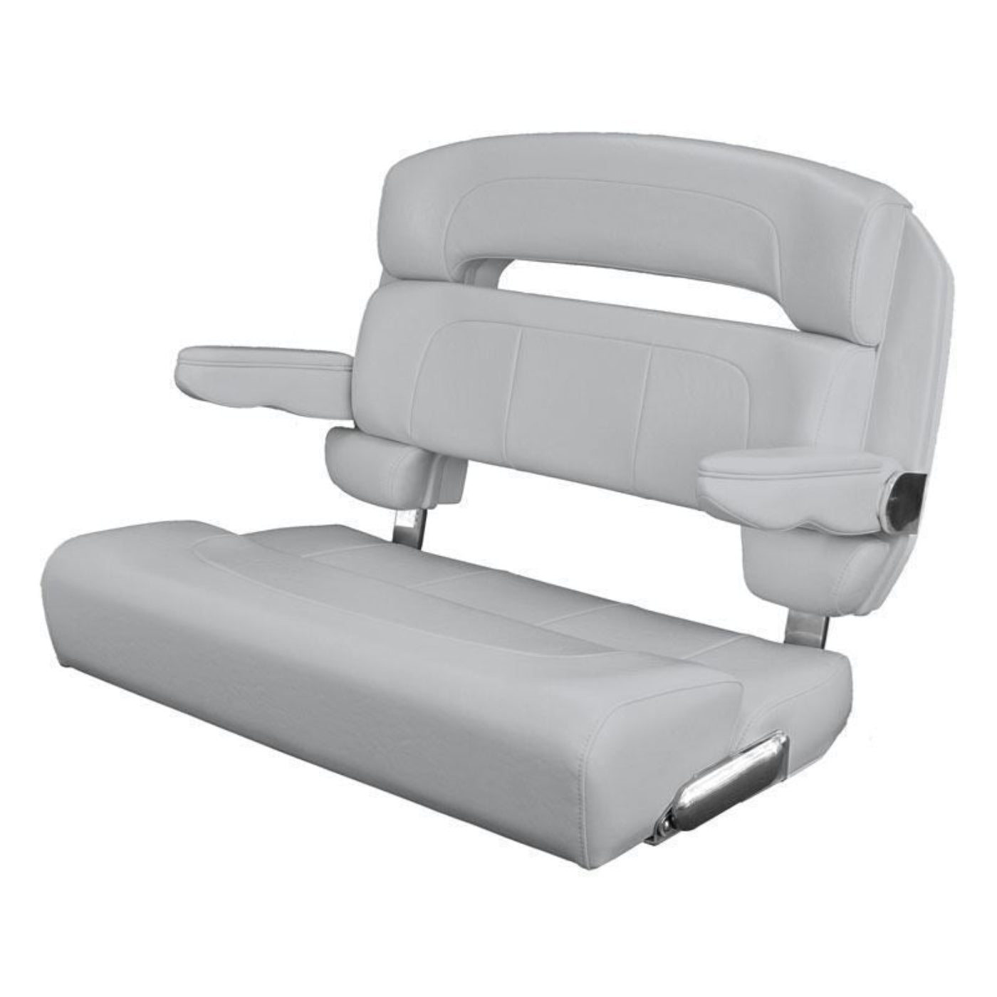 The Capri Helm Bench supports more than just the captain. It offers more space for entertaining and comfort. This boat seat bench is engineered using only Type-316L marine-grade stainless-steel hardware. It also has a unique shield that secures the bolster in place, which prevents it from flipping down – ultimately eliminating dangerous pinch points.