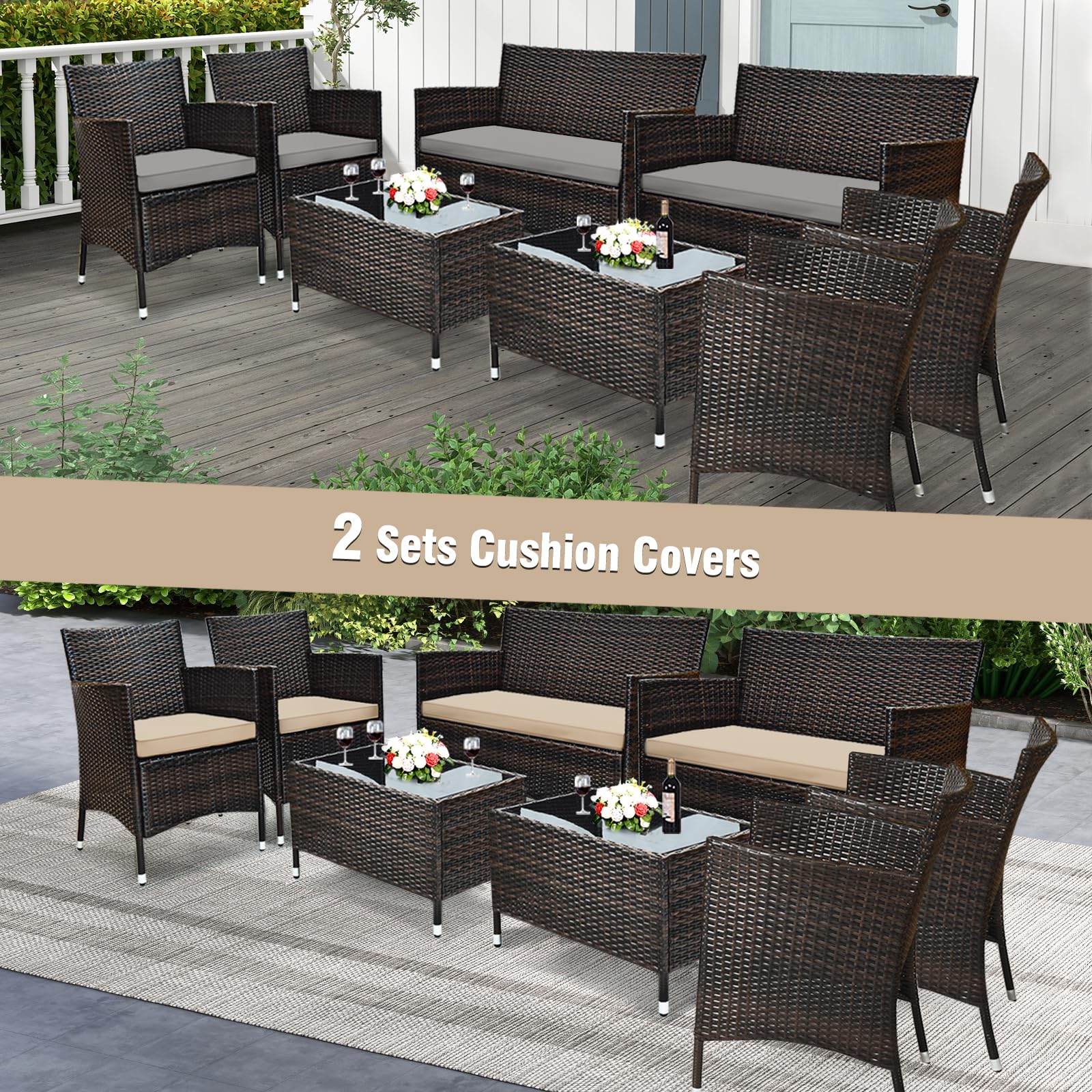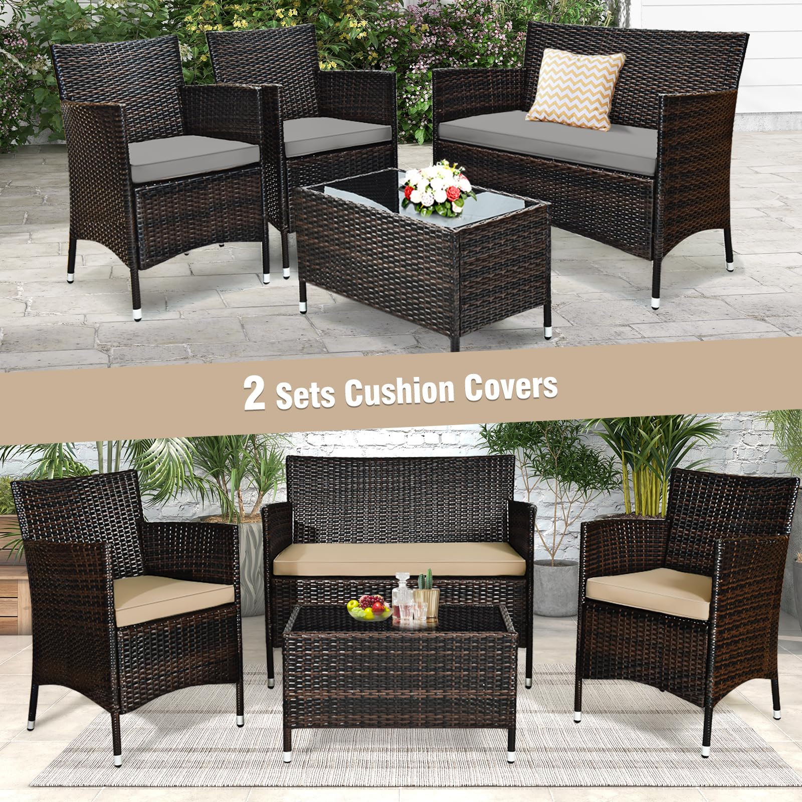 Great Value: Combining comfort, durability, and style, the Tangkula 4-Piece Rattan Patio Furniture Set offers excellent value, making it a great choice for enhancing your outdoor living space.