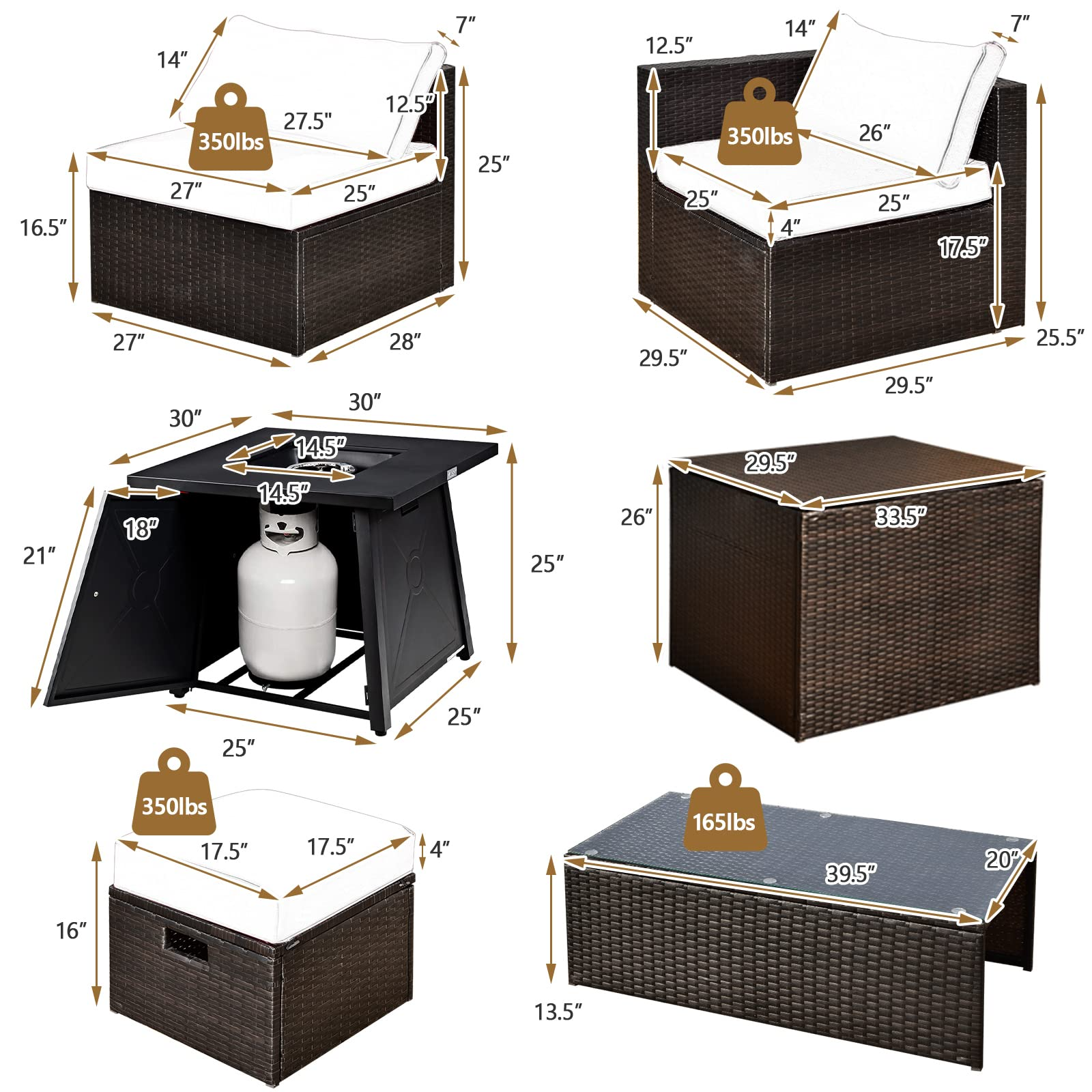 Complete 9-Piece Set: The Tangkula 9-Piece Patio Furniture Set includes a spacious sectional sofa, a 30" propane fire pit table, and plenty of seating, making it perfect for large outdoor gatherings, family parties, or casual lounging.