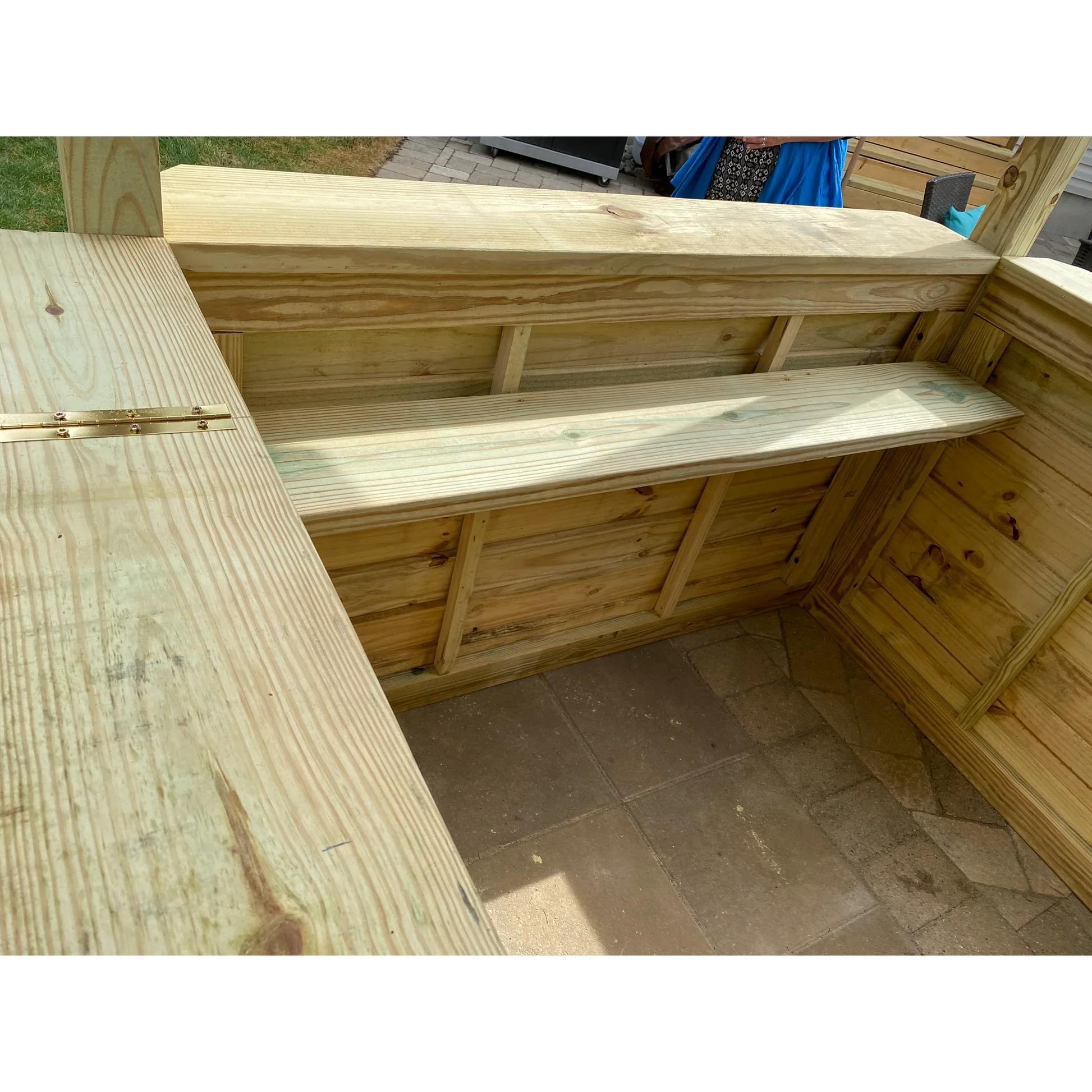 The Taverns To Go Temple Bar is built with the highest quality, pressure treated lumbar, allowing outdoor use all year round. The roof structure is a hard wearing galvanized corrugated steel designed the last. The treated wood can be stained or painted, allowing all customers to personalize their outdoor bar exactly as they would like.