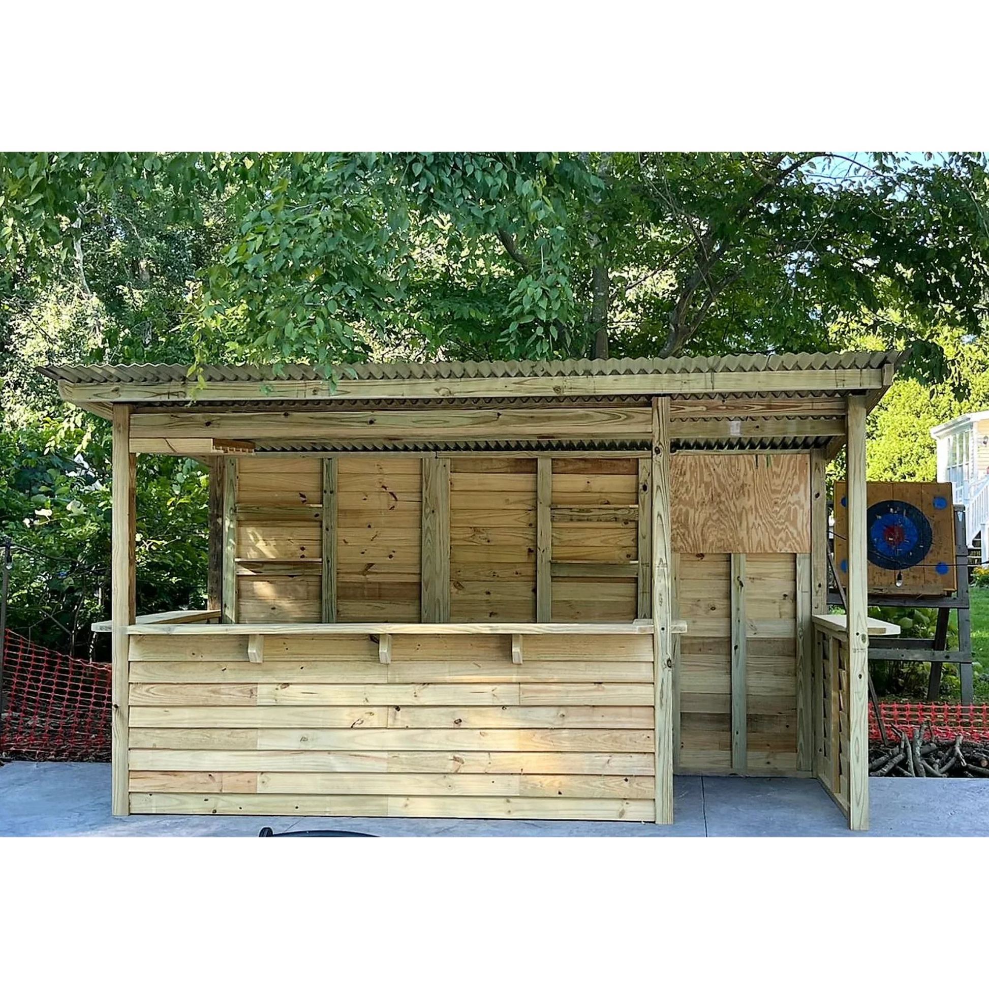 Designed for darts lovers, this ultimate yard bar creates the perfect space for friendly competitions and social gatherings. With a spacious layout and a dedicated area for your dartboard, it’s an ideal spot to enjoy a game while sipping your favorite drink. Whether you're practicing your aim or hosting a tournament with friends, this outdoor bar brings entertainment and style to your backyard.