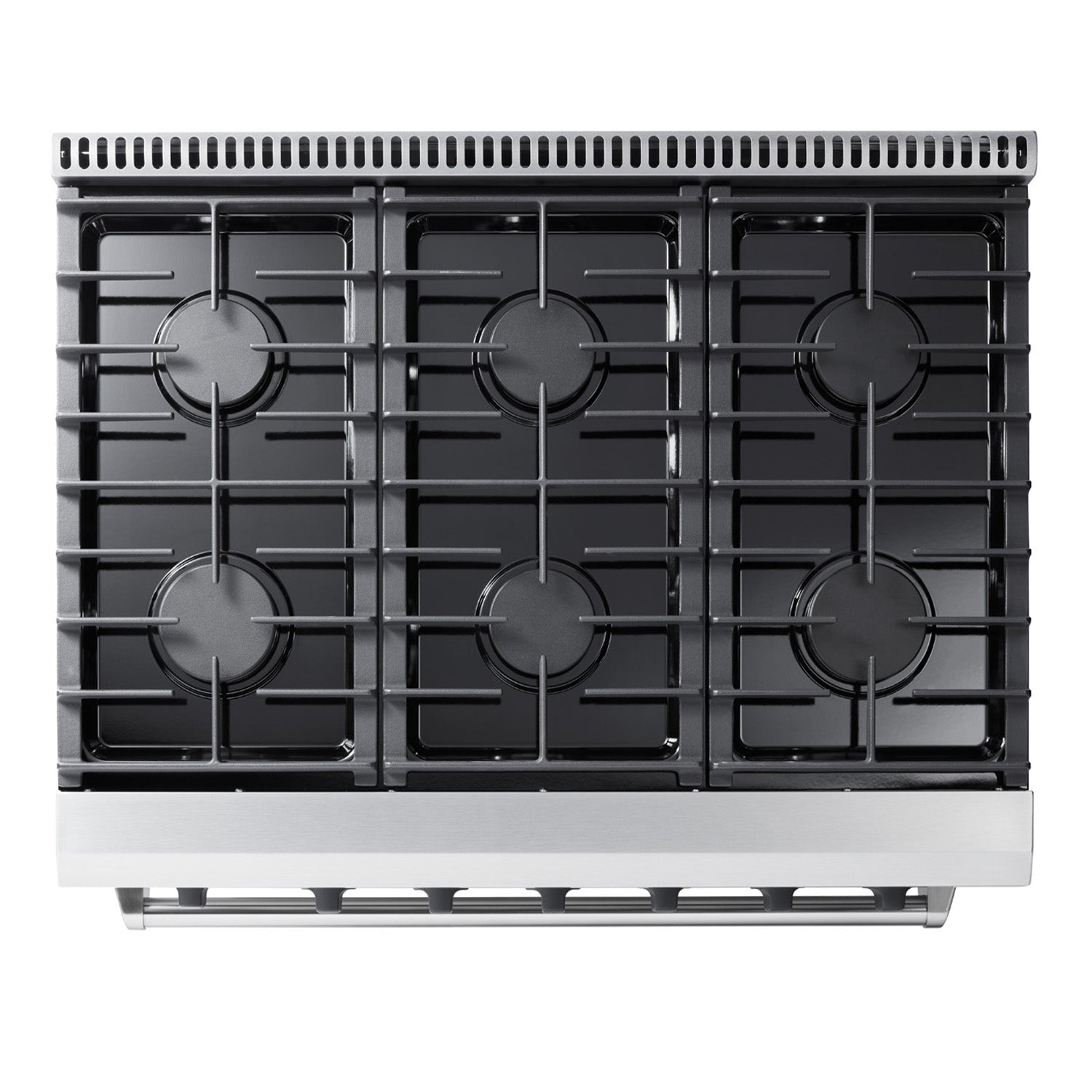 A: The gas range features multiple burners, a spacious oven, and durable stainless-steel construction for efficient cooking.