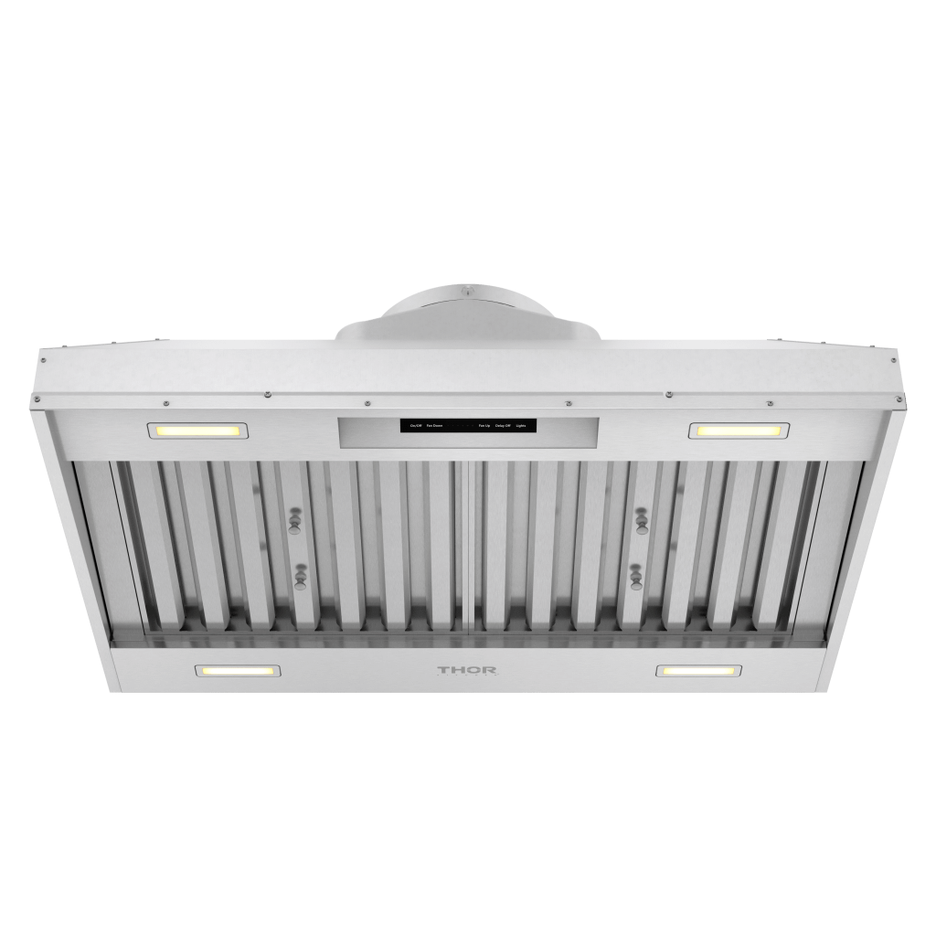 THOR Kitchen offers the power and performance of a premium professional appliance at a practical price. Introducing the 36" Liner Hood, designed to effortlessly handle all your kitchen ventilation needs with its powerful 1200 CFM motor. Perfectly customizable to meet any custom cabinet design, this liner hood integrates seamlessly into your kitchen decor. Wave goodbye to smoke, odors, and steam with intuitive Gesture Controls that let you adjust the speed with just a wave of your hand. The intelligent Heat Sensor activates the hood at 131(degree)F and shuts it off at 104(degree)F, while the Delay-Off feature lets you set a power-off delay for up to 12 minutes. Keep your kitchen grease-free with deep-groove Baffle Filters, which are also dishwasher-safe for easy cleaning. Bright LED Lights illuminate your cooking space, and the Clean Filter Reminder ensures your filters are always maintained. With 6 adjustable fan speeds and a responsive Touch Control pnael, you have complete control over your kitchen environment.
