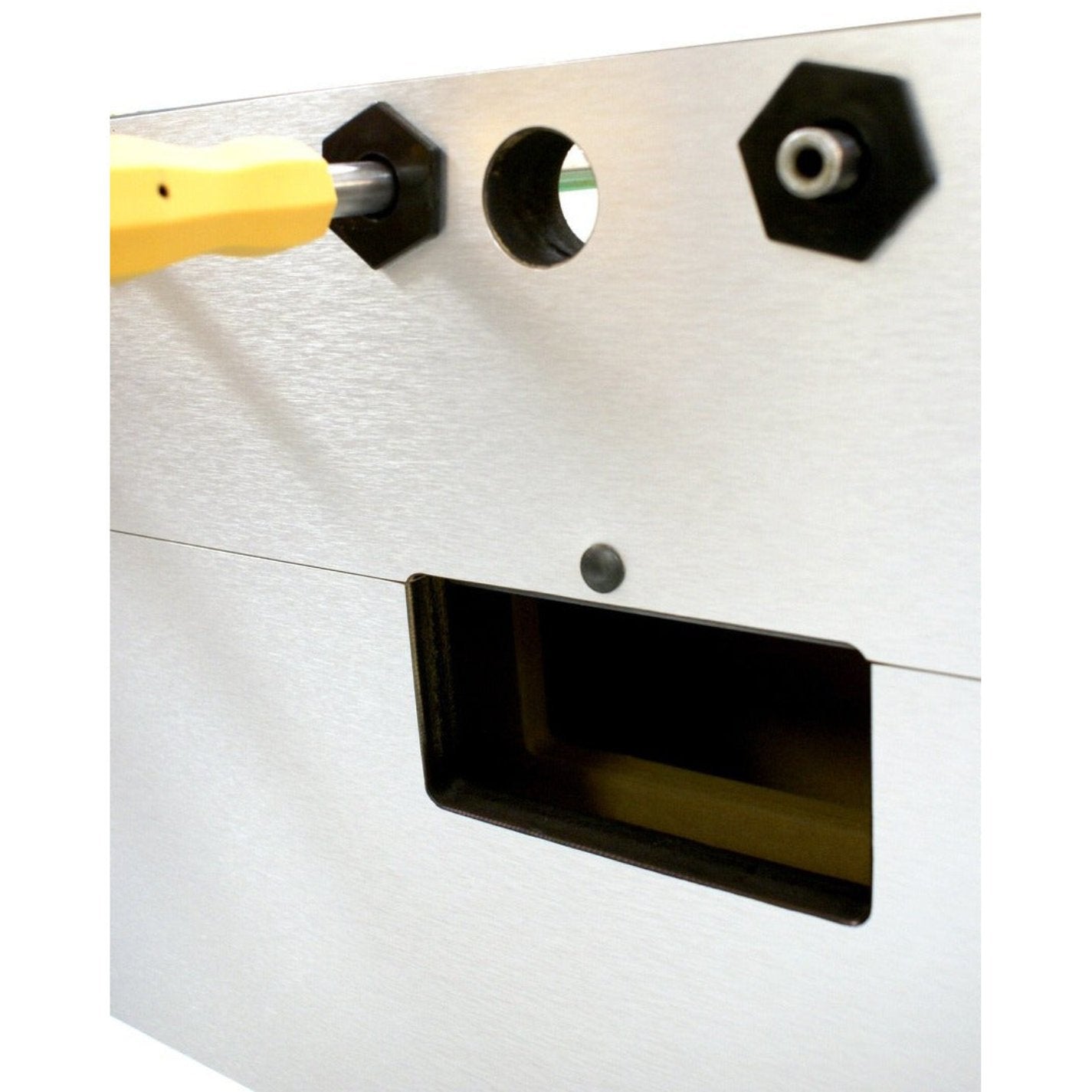 The Platinum Tour Edition combines the durability and solid 2 piece construction found on Tornado products for years, and the upgrades that Tournament Players have asked for. The Platinum Tour Edition is coin-operated and considered by many as the best foosball table in the world. It uses patented men with improved sharper corners and increased cross section allowing for better ball control and passing. This table comes standard with a 5-coin Push Chute mechanism set for either tokens or most types of currency.