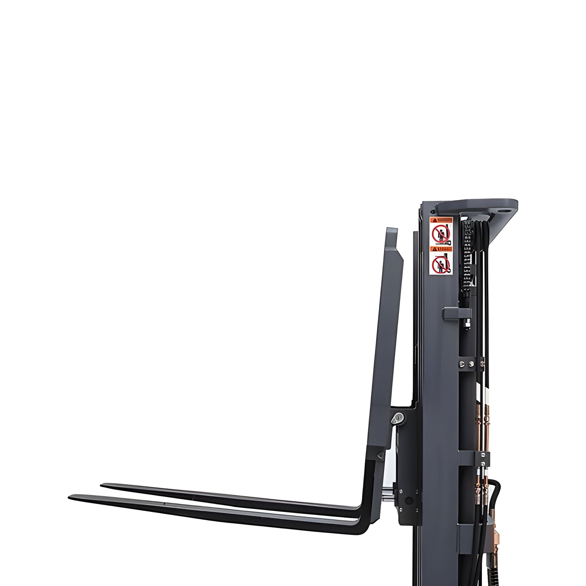 With emergency stop switch and electricity lock button, and multi-valve controlling levers, the 3,300 lbs stacker truck is ergonomic for operation. The adjustable regulator valve can adjust the lowing speed of the masts.
