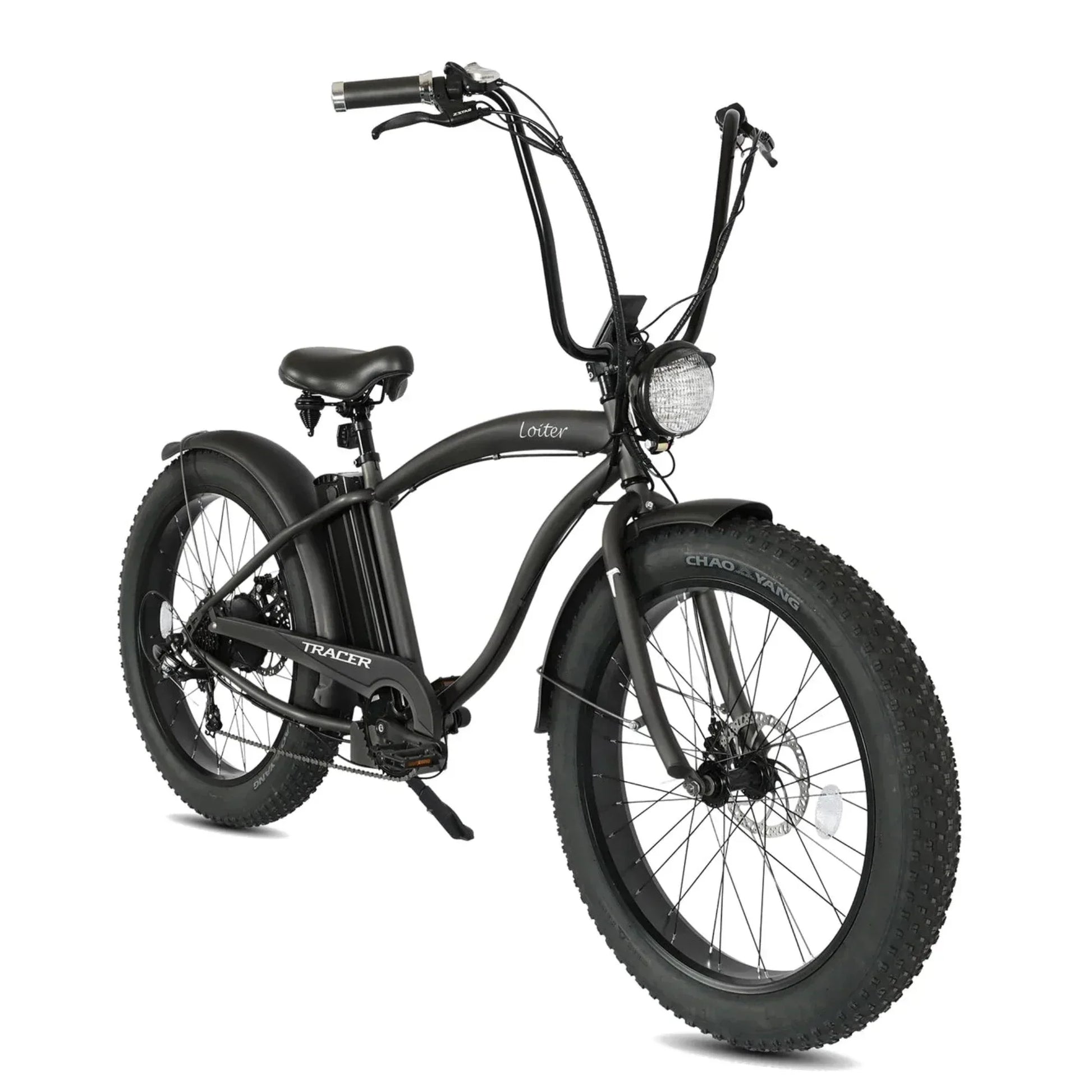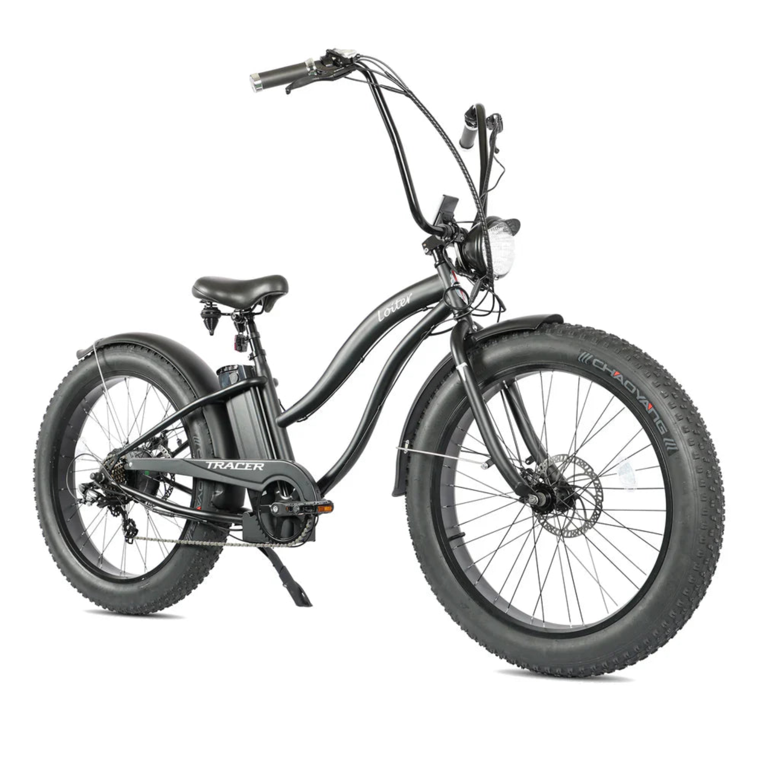 Q: What is the Tracer 800W 26" Loiter Cruiser Fat Tire Electric Bike?