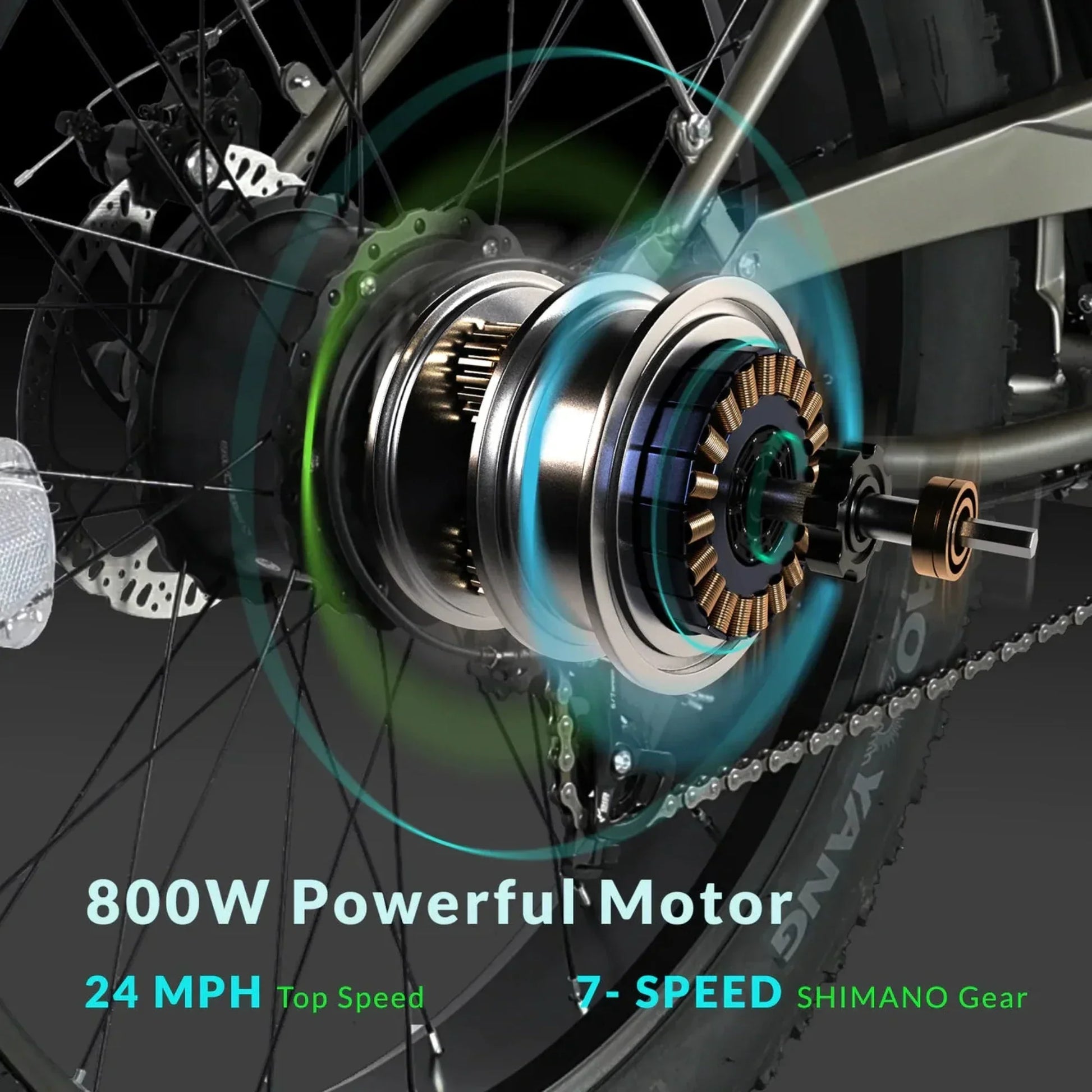 | Rear Hub Motor | 48V, 800W High-Speed Brushless (Max Speed at 25mph) |