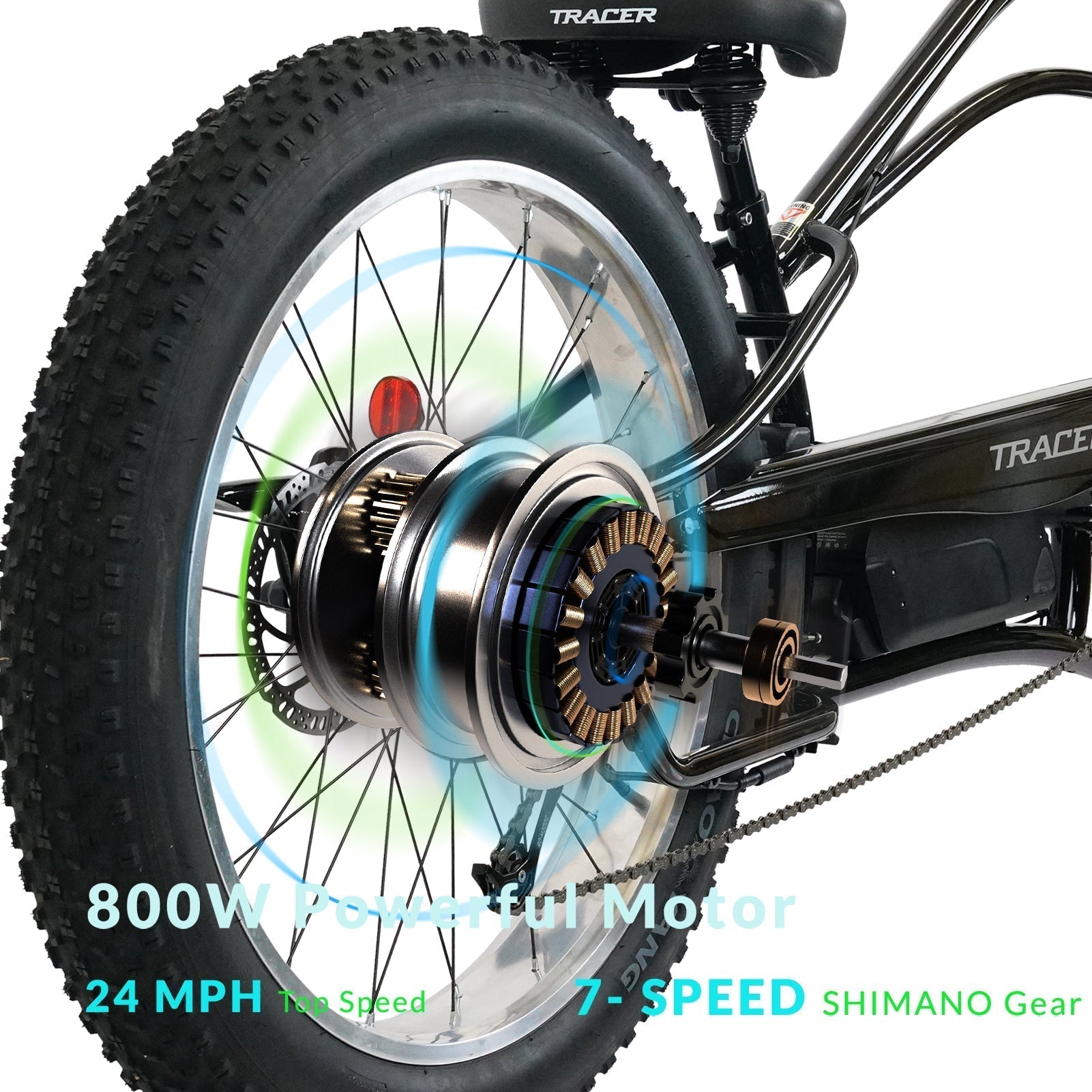 Q: What is the Tracer 800W Tracker DS7 Speed Stretch Electric Bike?