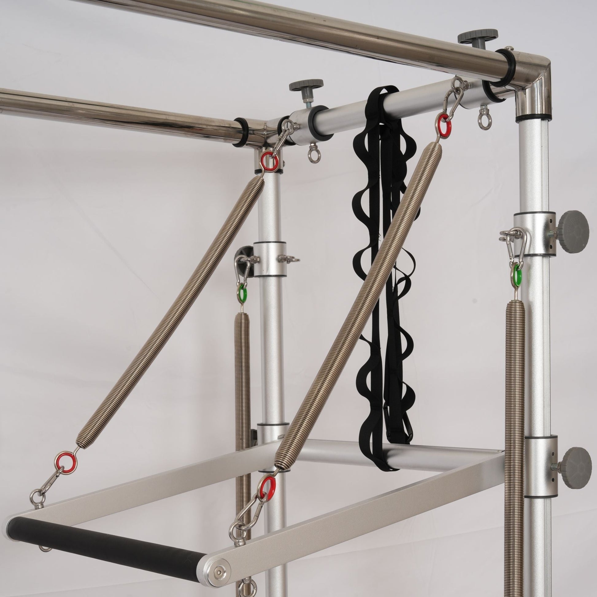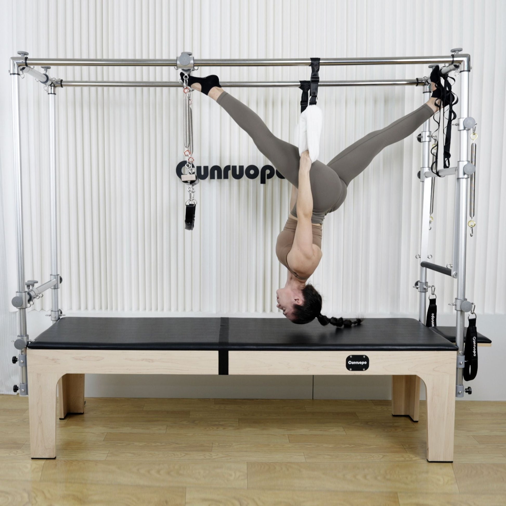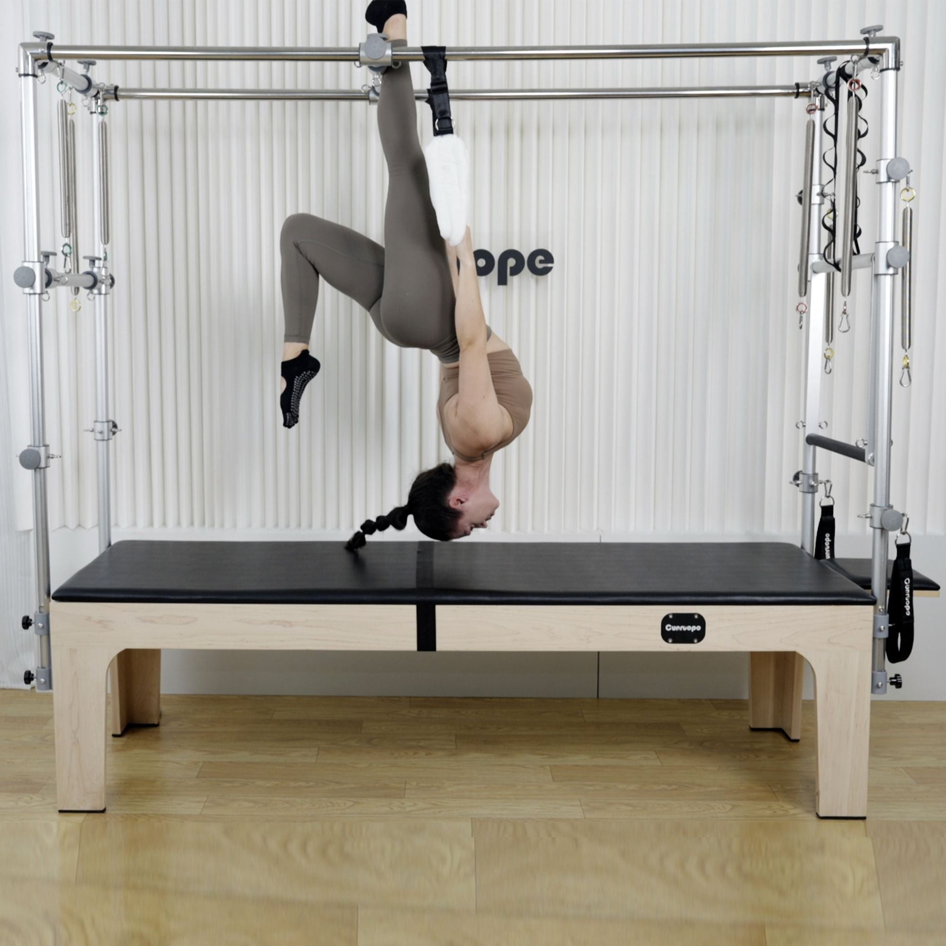 A staple of every well-equipped Pilates facility, the cadillac trapeze table offers an extensive range of applications for everyone from post-rehab clients to athletes. This ultra-sturdy, versatile unit will add more than two hundred exercises to your Pilates repertoire and challenge your clients in different planes of motion.