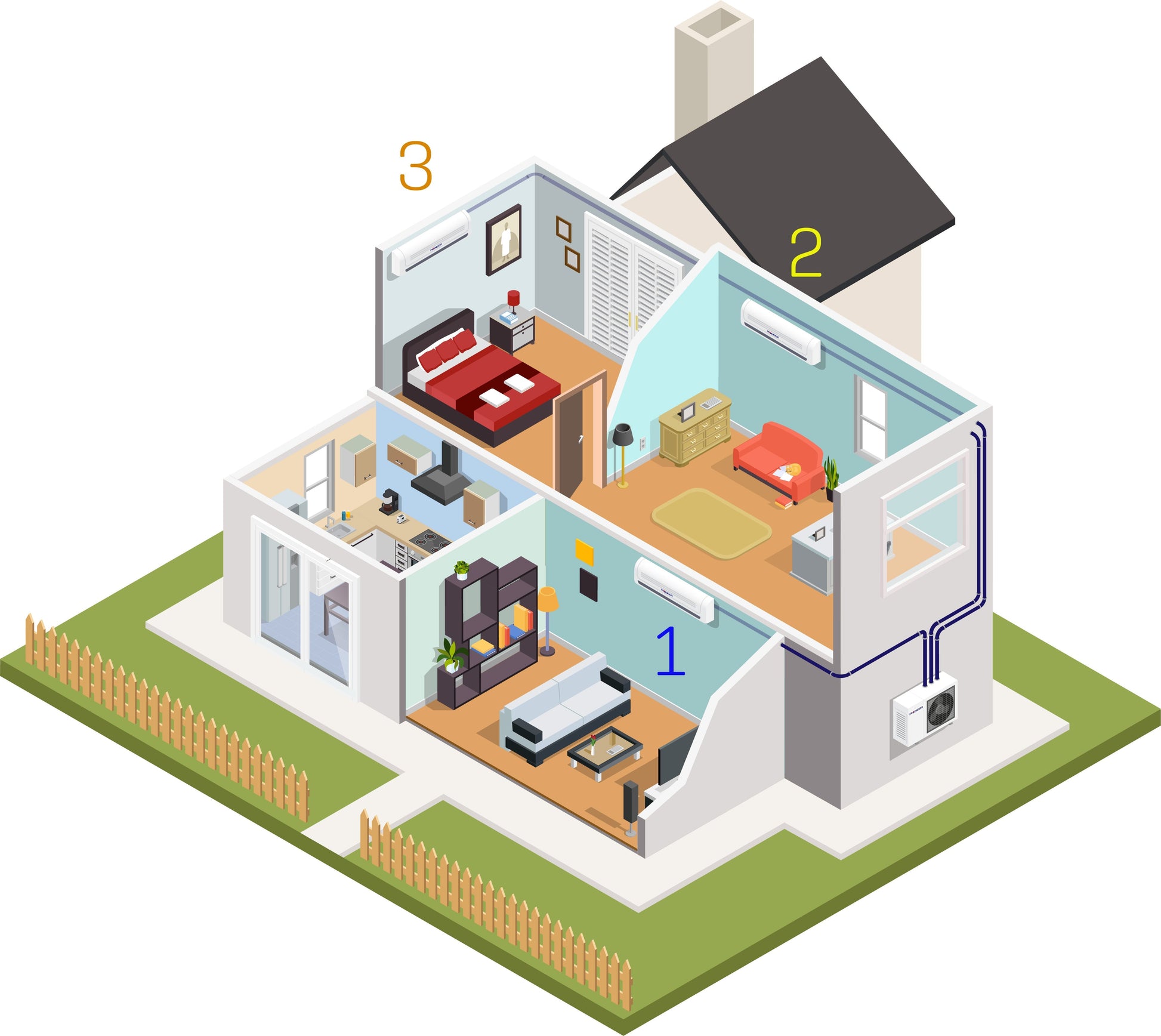 Wall-mounted ductless units save floor space and complement modern interiors.