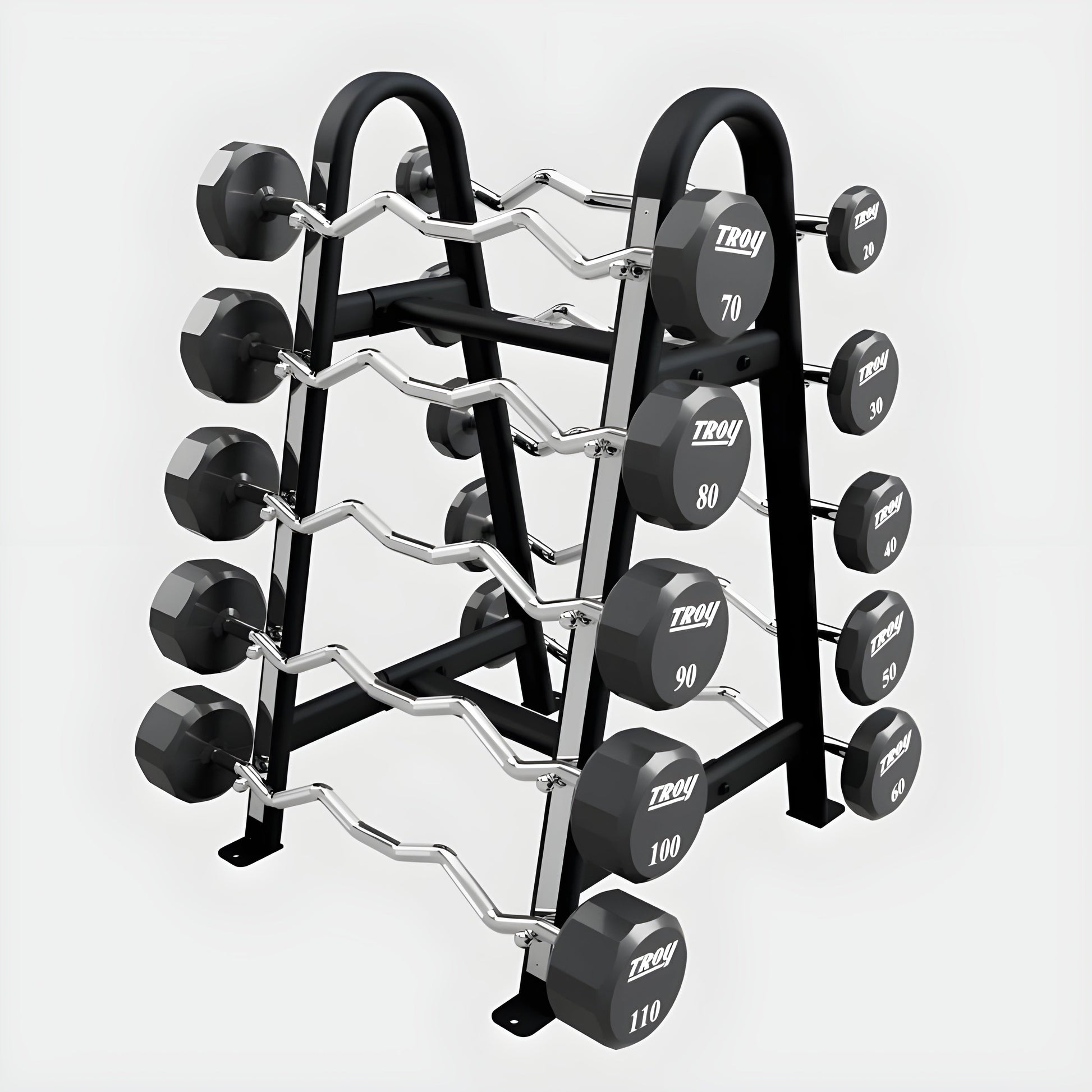 Looking for Efficient Barbell Storage? Try the Troy BB-10 Double Sided Horizontal Fixed Barbell Rack!The Troy BB-10 Double Sided Horizontal Fixed Barbell Rack is the perfect solution for organizing your gym space. Designed to hold up to 10 fixed barbells or fixed curl bars, this durable Fixed Barbell Rack offers dual-sided storage for maximum efficiency. Its sleek design, complemented by a chrome wear guard, adds a modern touch while ensuring long-lasting durability. Keep your gym clutter-free and organized with this premium horizontal barbell storage solution.UPGRADE YOUR GYM STORAGE TODAY!Organize your gym efficiently with the Troy BB-10 Double Sided Horizontal Fixed Barbell Rack. This durable Fixed Barbell Rack is the ultimate solution for horizontal barbell storage, combining strength, style, and functionality. Optimize your fitness space today with the reliable and professional Troy BB-10 Double Sided Horizontal Fixed Barbell Rack
