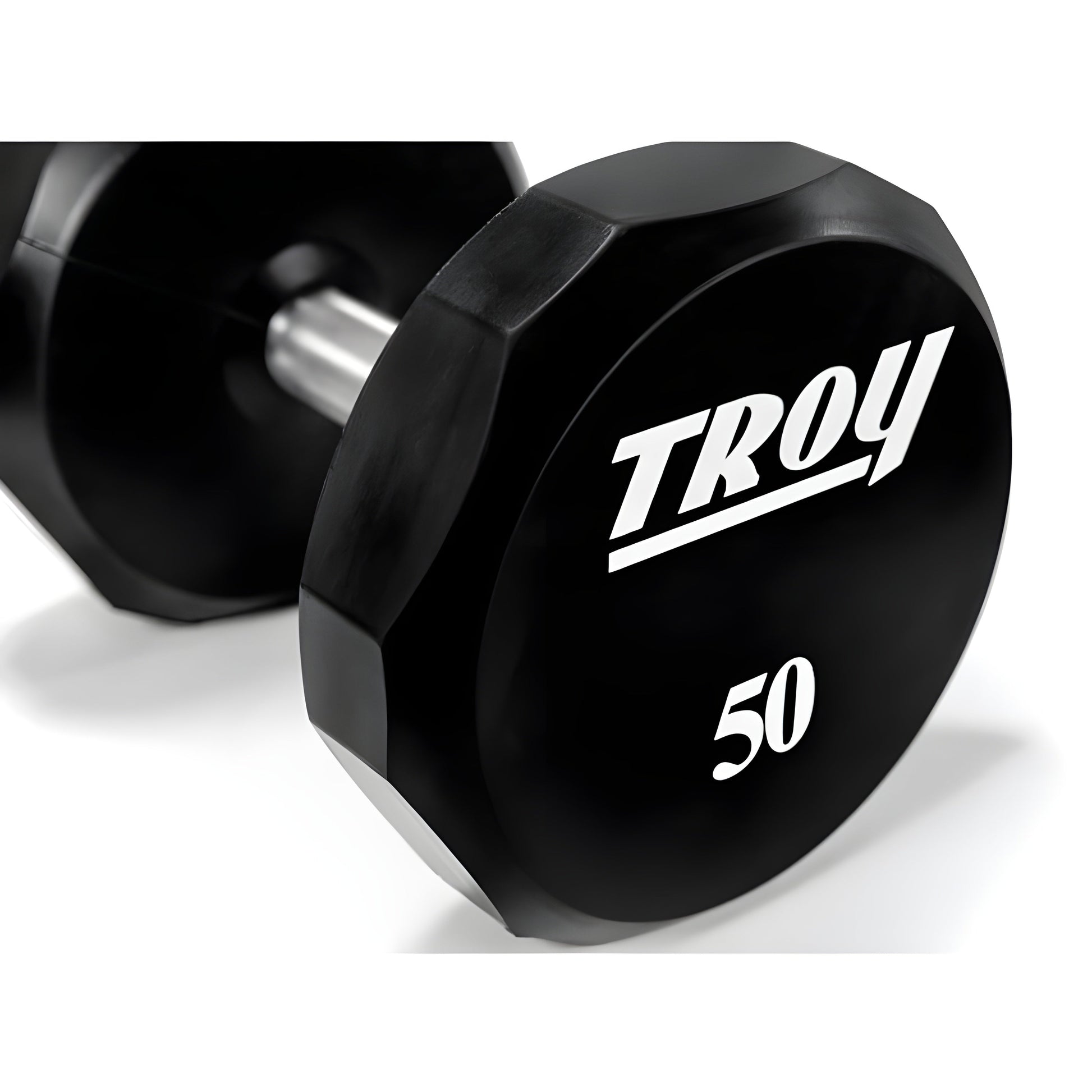 Looking for a Durable Dumbbell Set with Rack? Discover the TROY COMMPAC-TSDU50 5-50 lb Urethane Dumbbell Set!If you’re searching for a robust, high-quality dumbbell set with rack for your gym or home, the TROY COMMPAC-TSDU50 5-50 lb 12-Sided Urethane Dumbbell Set with Rack is an ideal choice. These 12-sided Troy dumbbells are encased in durable polyurethane, designed to withstand heavy use and prevent rolling. Each dumbbell features a sleeve that extends through the head and is permanently welded, providing unmatched structural integrity. Paired with a sturdy, two-tier saddle rack with scratch-resistant powder coating, this set offers easy access and noise reduction, making it perfect for any fitness setting.UPGRADE YOUR TRAINING SETUP! Invest in the TROY COMMPAC-TSDU50 5-50 lb 12-Sided Urethane Dumbbell Set with Rack to bring professional-grade quality and convenience to your workout space. These Troy dumbbells and the included rack provide a durable, organized solution for your strength training needs. Start building a more efficient training space today with this exceptional dumbbell set with rack!