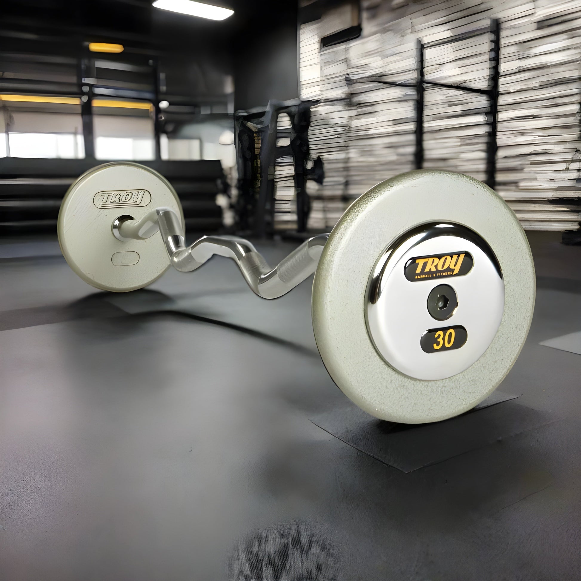 Ready to Upgrade Your Strength Training? Try the TROY HZB-C Pro Style Fixed Curl Barbell Set!The TROY HZB-C Pro Style Fixed Curl Barbell Set - Hammer-tone Gray / Chrome End Caps is built for durability and professional use. These fixed curl barbells feature a solid steel bolt design and deep-set knurling for secure handling during intense workouts. Equipped with premium hammer-tone gray plates and chrome end caps displaying the TROY name and weight tags, this set delivers functionality and a sleek, polished look. Perfect for gyms or home setups, this curl barbell set is designed to meet the highest commercial standards.UPGRADE YOUR TRAINING SETUP! Add the TROY HZB-C Pro Style Fixed Curl Barbell Set to your gym for a professional-grade curl barbell set. Durable, reliable, and built to last, these Troy barbells are a must-have for strength training enthusiasts. Start your fitness journey today with this premium barbell set!