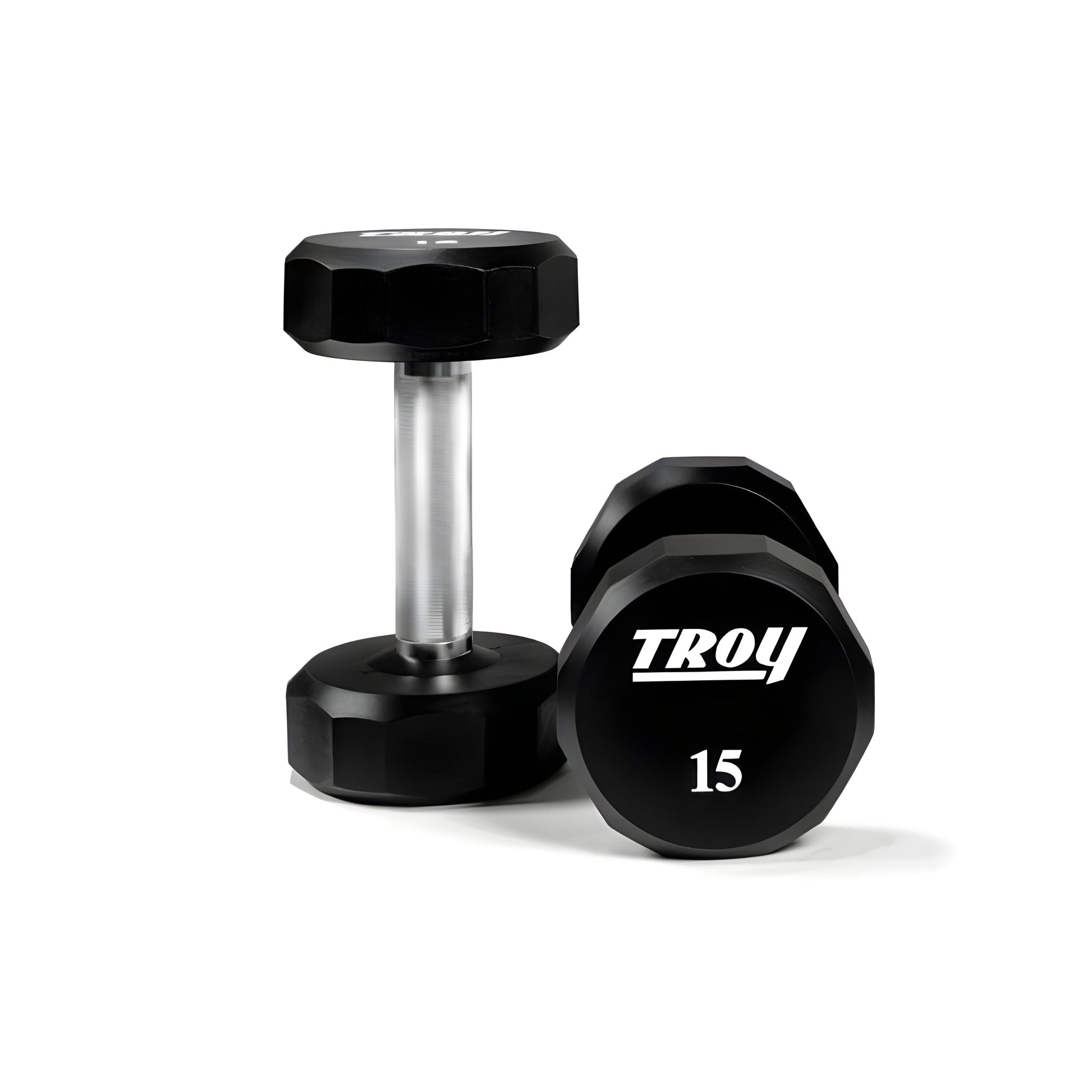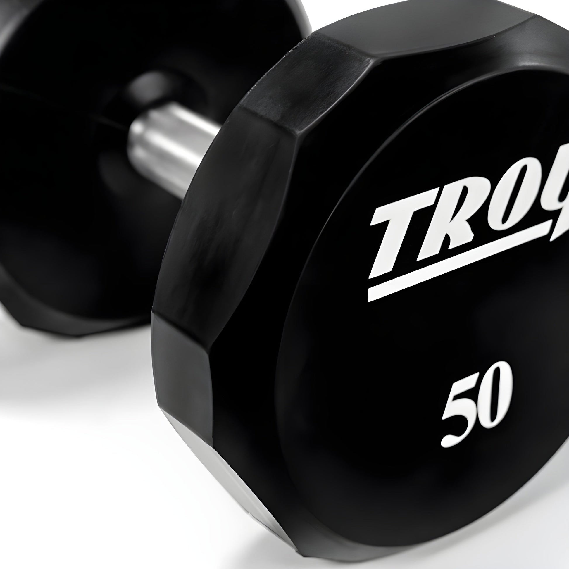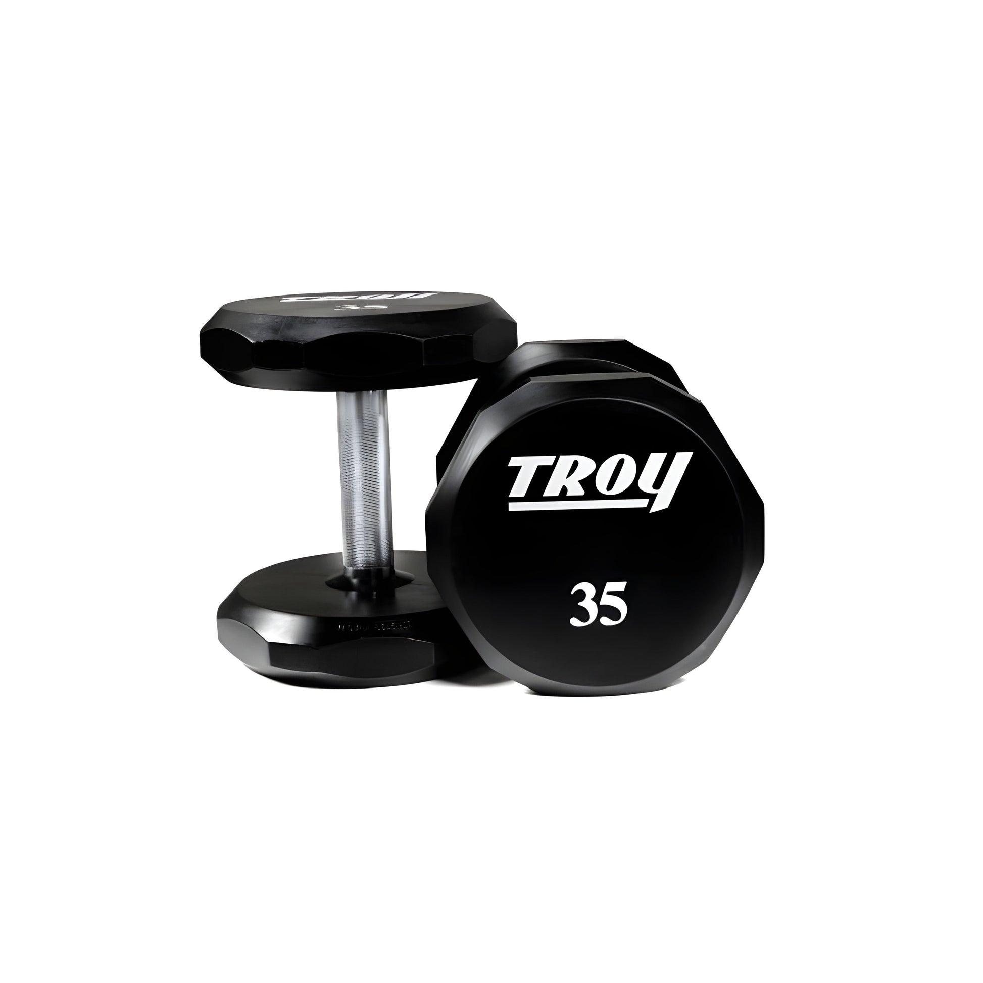The Troy TSD-U 12-Sided Urethane Encased Dumbbells Set represents the pinnacle of commercial-grade strength equipment. These Troy dumbbells feature a sleek 12-sided design and are encased in durable polyurethane, ensuring long-lasting performance and structural integrity. Each dumbbell set is crafted with a solid steel handle, hard-chromed and precision-machined with a medium knurl for a secure, comfortable grip. The Troy TSD-U 12-Sided dumbbells set is an ideal choice for any commercial or professional gym setting.PGRADE YOUR TRAINING SETUP! Invest in the Troy TSD-U 12-Sided Urethane Encased Dumbbells Set to add strength, durability, and ease of use to your workout. These Troy dumbbells are built to meet commercial standards, making them a high-quality addition to any gym setup. Start building a more efficient training space today with this premium dumbbell set!