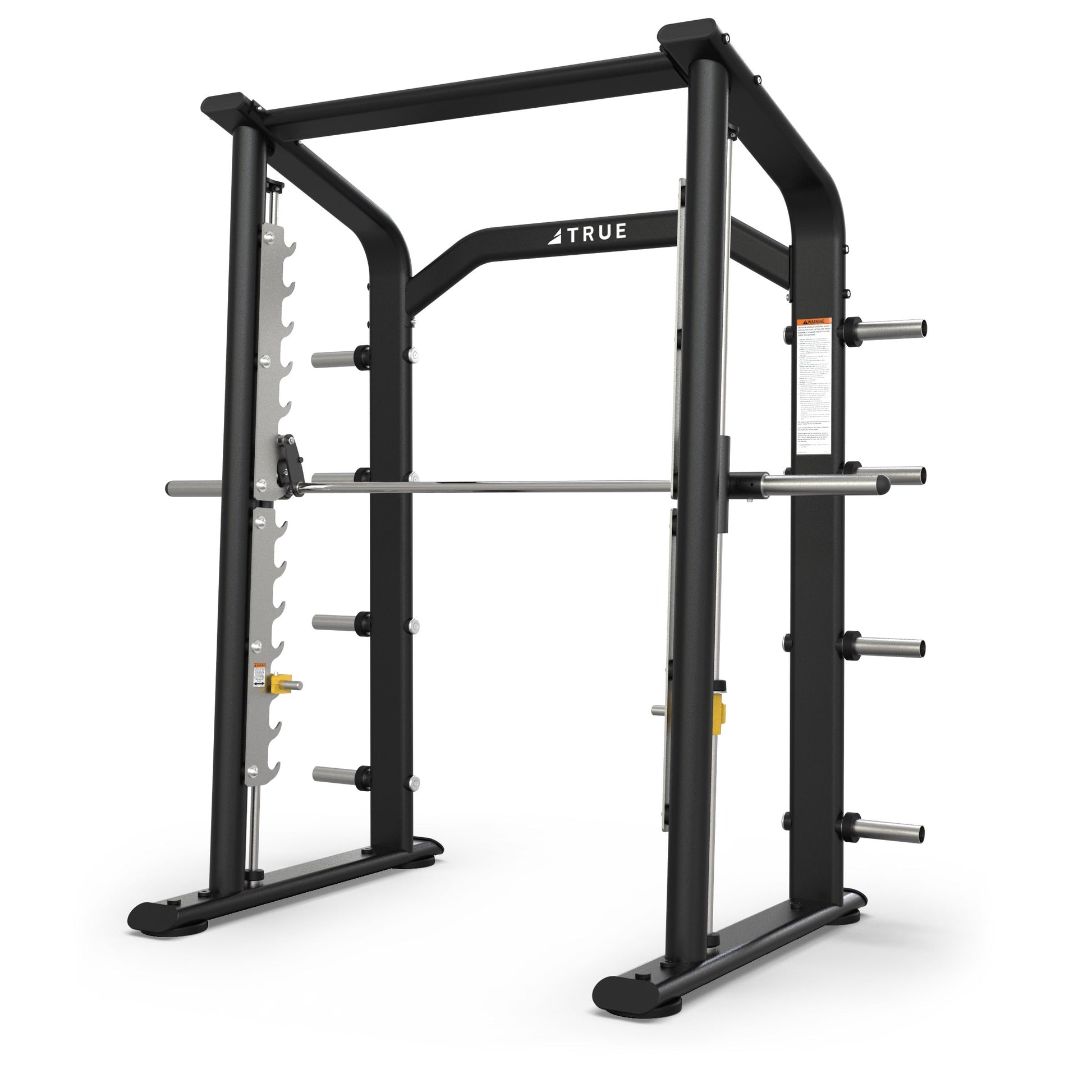 The new XFW-6800 Smith Machine from TRUE Fitness Technology features modern styling and high-quality commercial construction. The open frame design with elevated head clearance provides for easy access and movement of utility benches. Counterbalanced to 10 lbs (4.5 kg), the weight carriage is angled 3 degrees to accommodate the natural movement of anatomical joints during exercise. Adjustable safety stops and 8 storage posts are standard.