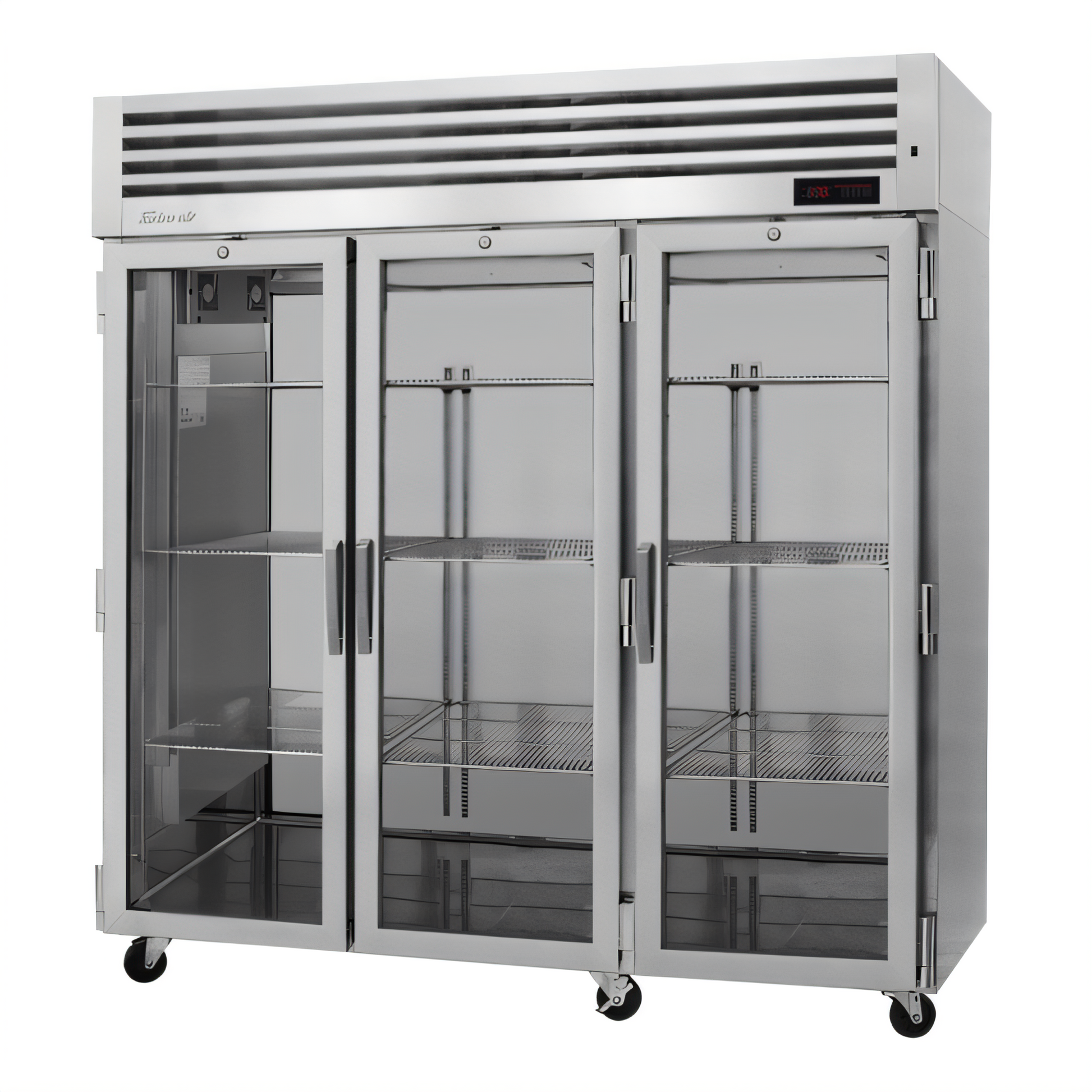 The Turbo Air PRO-77H-G is a three-section heated cabinet with glass doors, built for high-volume foodservice operations.