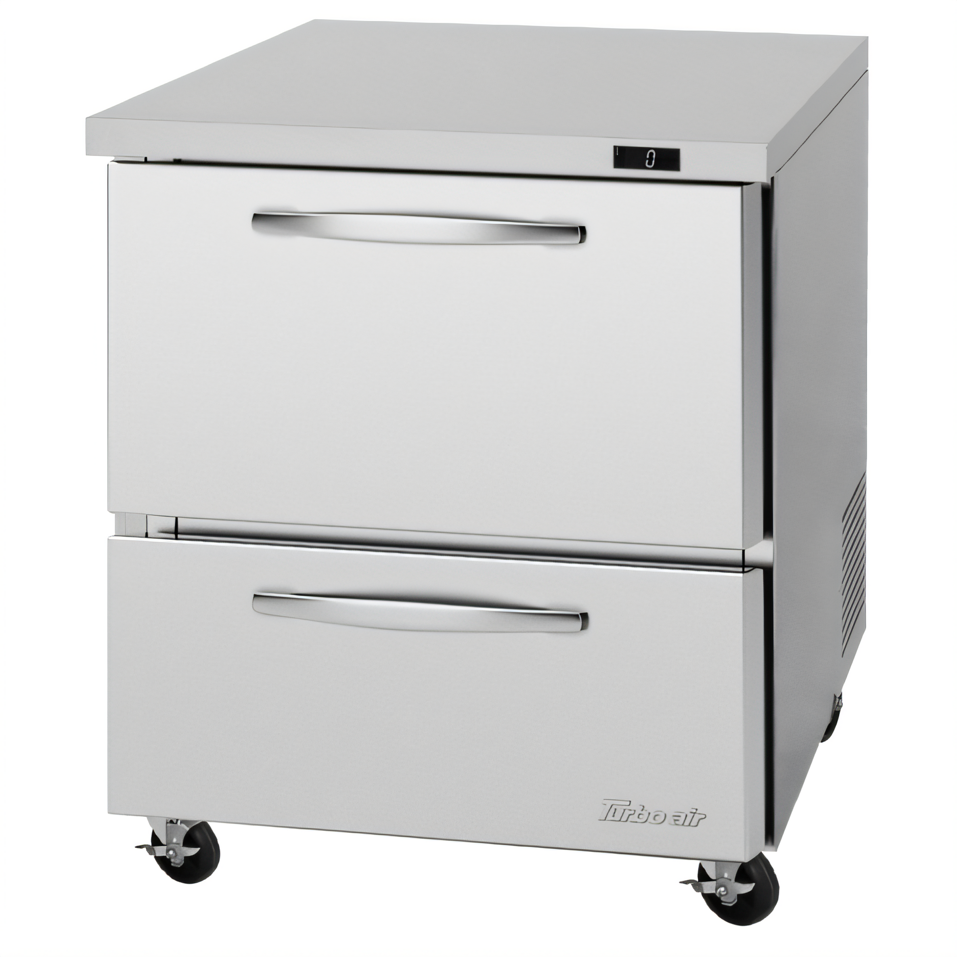 The Turbo Air PUF-28-D2-N Undercounter Freezer is a compact, two-drawer model, ideal for kitchens needing frozen storage in tight spaces.
