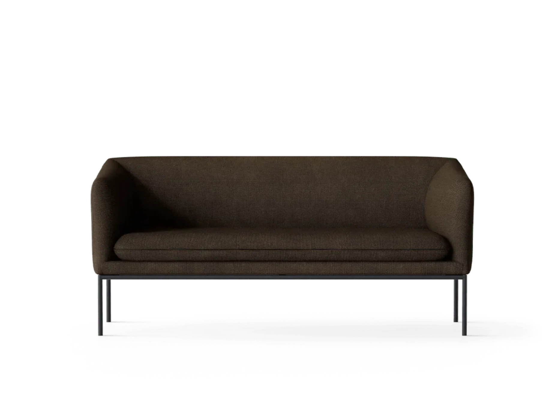 The Ferm Living Turn Sofa 2 brings that whole contrast thing into a compact seating option that actually works for people who don't have massive living rooms but still want something that looks intentional and well-designed. Available as a made-to-order piece, you can choose from their complete fabric lineup including premium Hallingdal wool, textured Pasadena blends, smooth cotton options, and specialty weaves in multiple colorways that coordinate beautifully with other Turn collection pieces or work perfectly on their own. The design plays with this interesting contradiction - the outer frame has these strict, sculptural lines that look clean and modern, while the inner cushioning is all soft curves that actually invite you to sit down and get comfortable. At 160cm wide, it's sized right for couples or small spaces where you want proper seating without overwhelming the room, plus those thin powder-coated steel legs make the whole thing feel like it's floating slightly off the ground.
