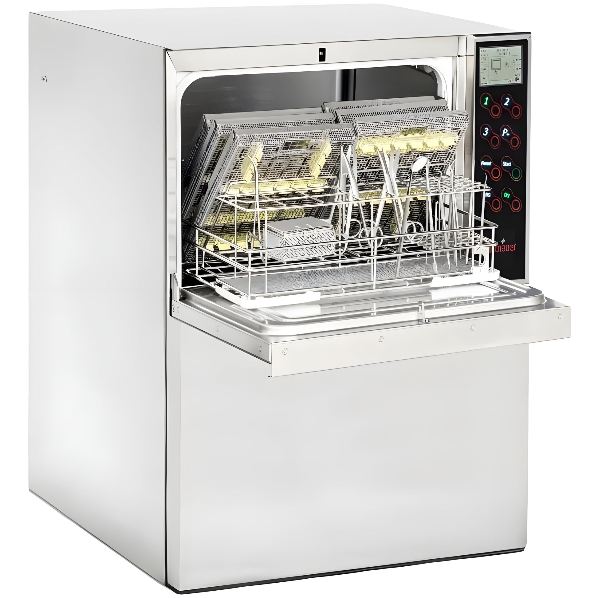 A: With programmable cycles, high-temperature thermal disinfection, and a compact, stainless steel design, it ensures compliance with hygiene standards while enhancing workflow efficiency.