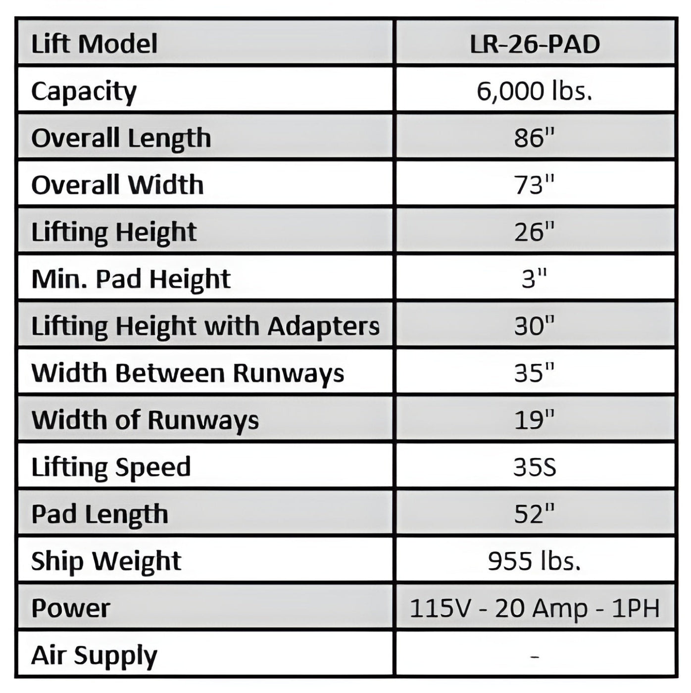 Tuxedo 6,000 Lb Low-Rise Pad Lift