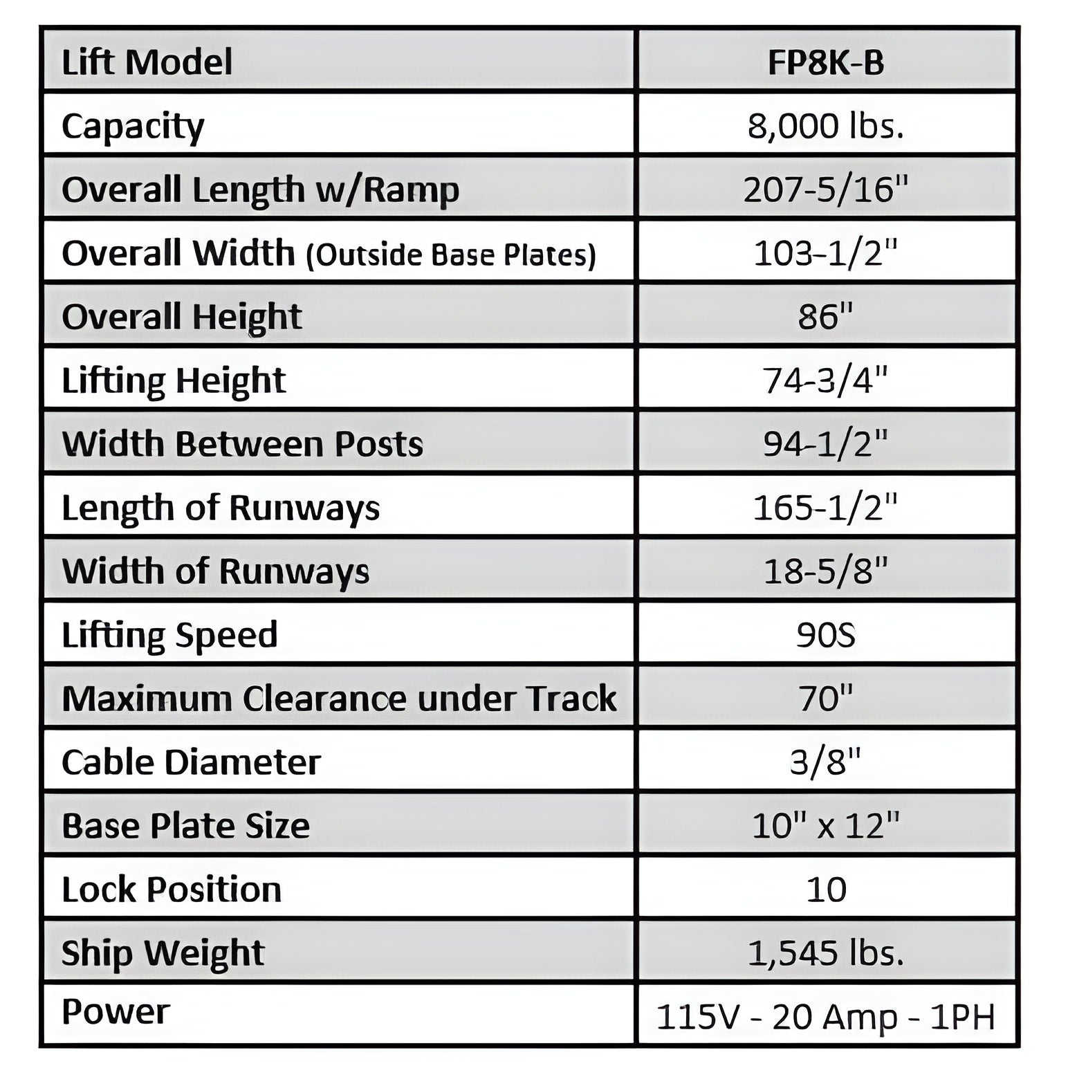 | Capacity | 8,000 lbs |