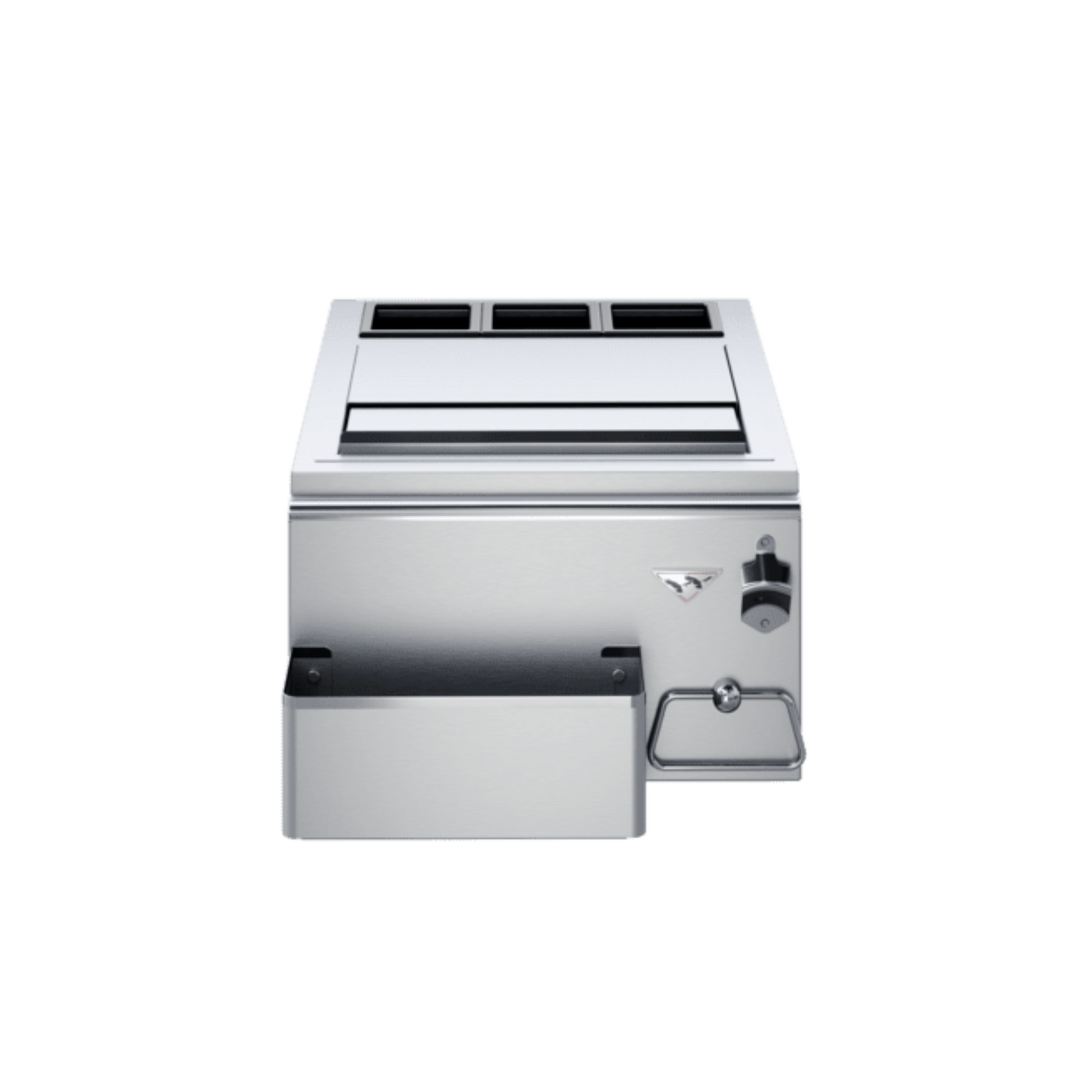 Twin Eagles TEOB18-B Outdoor Bar, 18 Inch provides added functionality to your outdoor kitchen and enhance your patio entertainment. With a specially designed three compartment storage system that holds up to 40 lbs. of ice, this bar allows you to keep beverages cool and condiments fresh. A convenient front speed rail keeps up to four one-liter bottles close at hand, while a stainless steel bottle opener and towel ring ensure your necessary accessories are always close by. Get more from your outdoor kitchen with help from Twin Eagles.