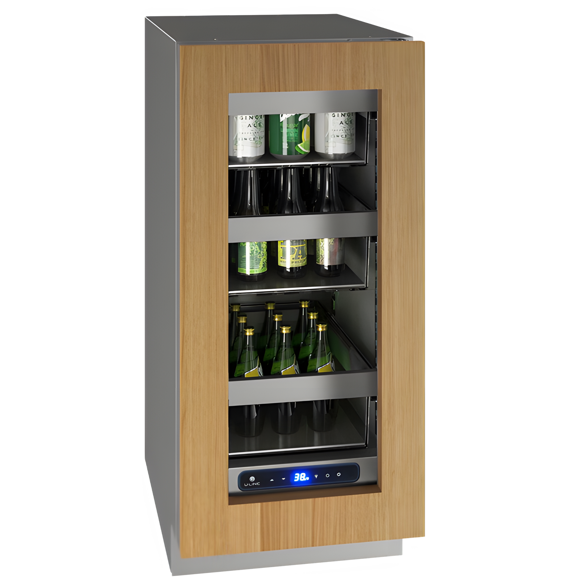 Store fresh produce, deli foods, pantry items, beverages, and more in our 15" 5 Class Slide & Secure™ Refrigerator. This product features stainless steel inside and out, convection cooling for quick and consistent temperatures, and a state-of-the-art variable speed compressor. Robust and refined, U-Line’s 5 Class Collection features an industry-exclusive full-depth lower interior allowing you to maximize storage space, adjustable blue and white LED lighting, and U-Adjust™ 19 position adjustment for Slide & Secure™ robust bins to contain and protect. This model can be built-in or used freestanding and is available with stainless steel or integrated door finishes that accept a custom door panel to match your surrounding cabinetry.