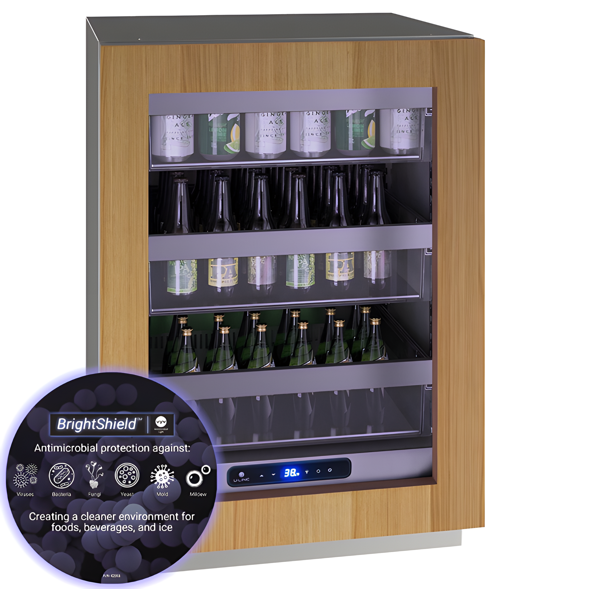Store fresh produce, deli foods, pantry items, beverages, and more in our 24" 5 Class Slide & Secure Refrigerator. This product features stainless steel inside and out, convection cooling for quick and consistent temperatures, and a state-of-the-art variable speed compressor. Robust and refined, the 5 Class Collection features an industry-exclusive full-depth lower interior allowing you to maximize storage space, adjustable blue and white LED lighting, and U-Adjust™ 19 position adjustment for Slide & Secure™ robust bins to contain and protect. This model can be built-in or used freestanding and is available with stainless steel or integrated door finishes that accept a custom door panel to match your surrounding cabinetry. Select models available with BrightShield antimicrobial lighting technology.