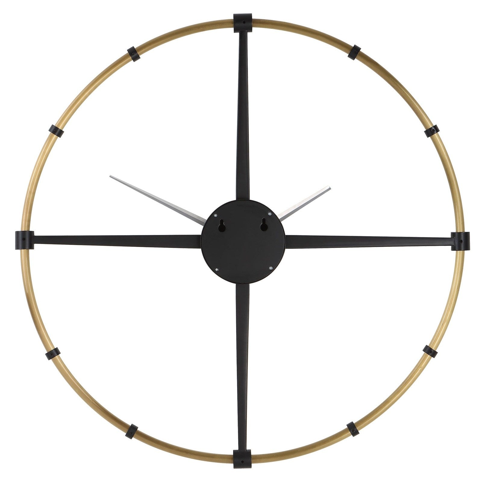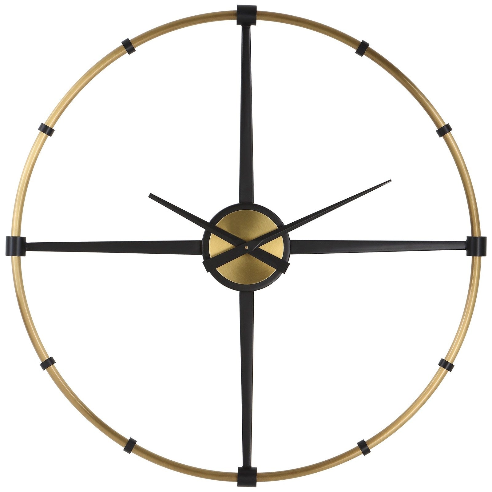 Uttermost Captain Industrial Wall Clock 6462 features a solid iron frame with antique brushed brass and satin black finishes for a modern industrial look. Quartz movement provides precise time-keeping and the clock runs on just one AA battery. Advanced product engineering, quality materials, and sturdy packaging reduce damage during shipping.