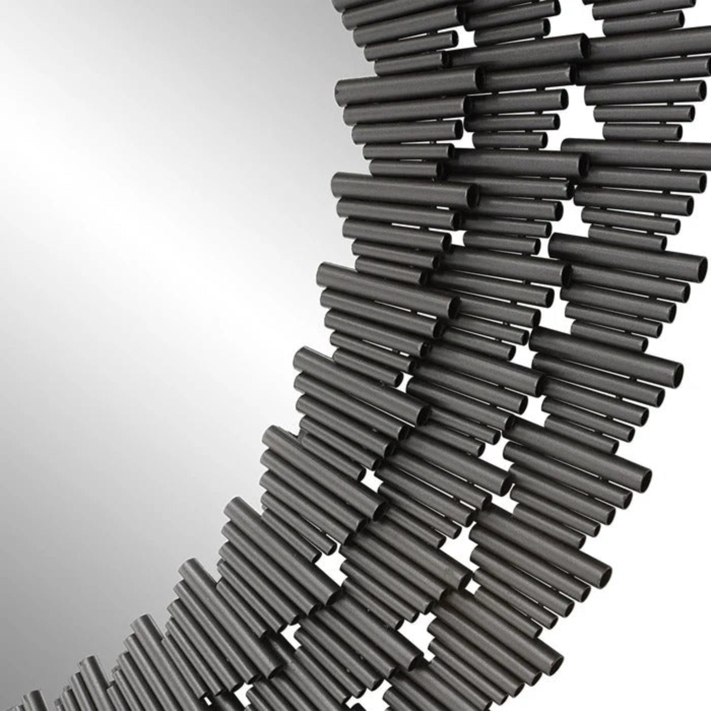 This contemporary round mirror features a sophisticated three-layer design of hand-cut iron dowels in varying lengths, finished in a burnished steel silver hue and a generous 1 1/4" bevel. Uttermost combines premium materials, high-style design, and advanced engineering for an unparalleled product with one of the lowest damage rates in the industry. Every piece is specifically made and packaged for easy shipping.