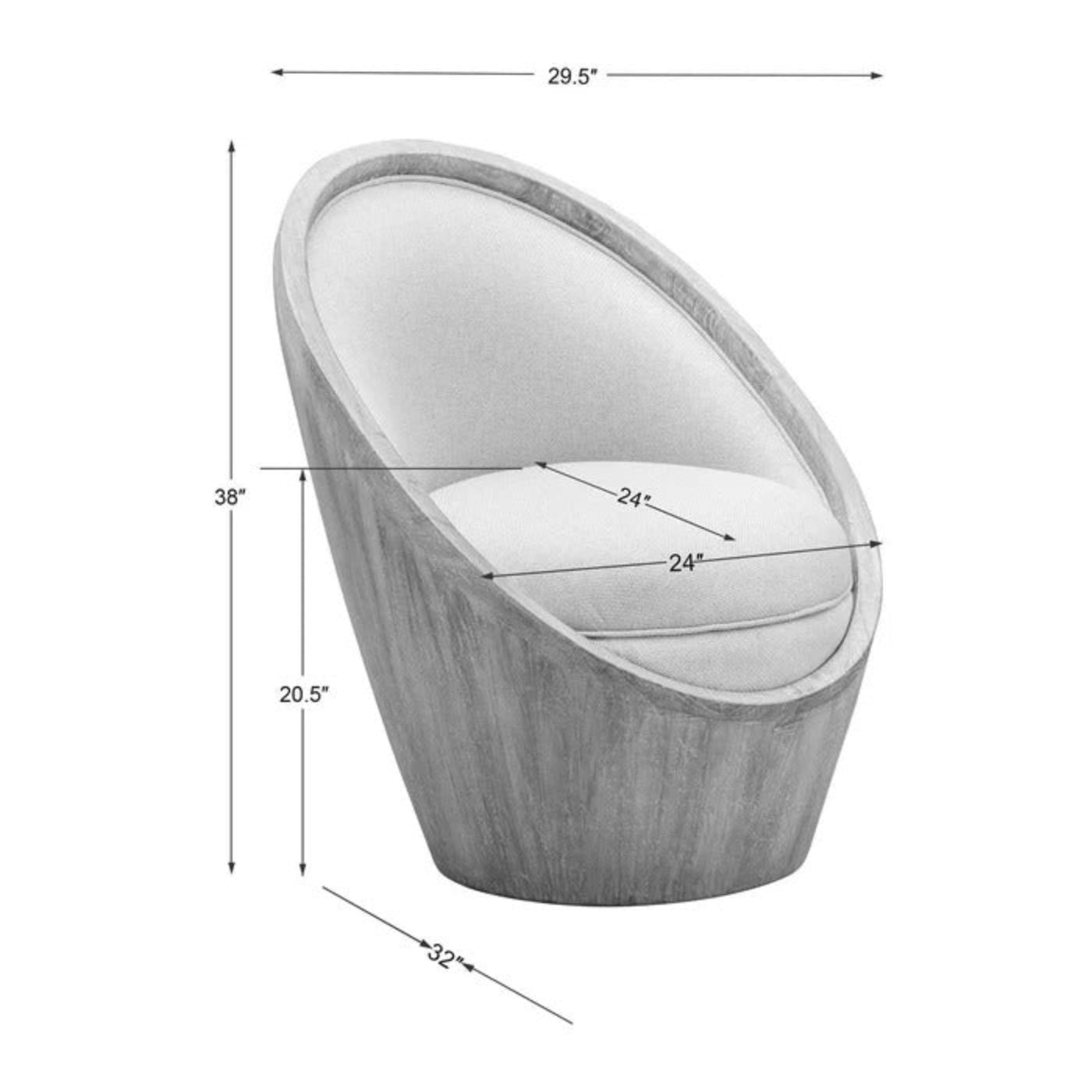 Clean barrel-chair silhouette with exposed wood legs provides understated elegance, giving modern appeal without overwhelming the space.