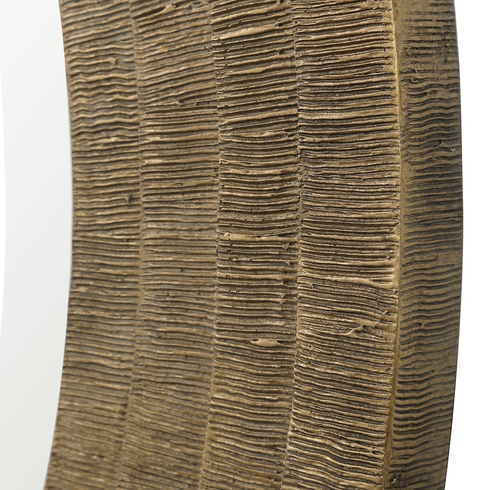 This Uttermost Relic Mirror boasts a distinctive design with a layered frame in aged gold, hand-carved texture, and a beveled center mirror inspired by tribal and bohemian styles. Uttermost mirrors are constructed with premium-quality materials, high-style design, advanced product engineering, and reinforced packaging to ensure some of the lowest damage rates in the industry. Shipping-friendly design and manufacturing guarantee convenient delivery.