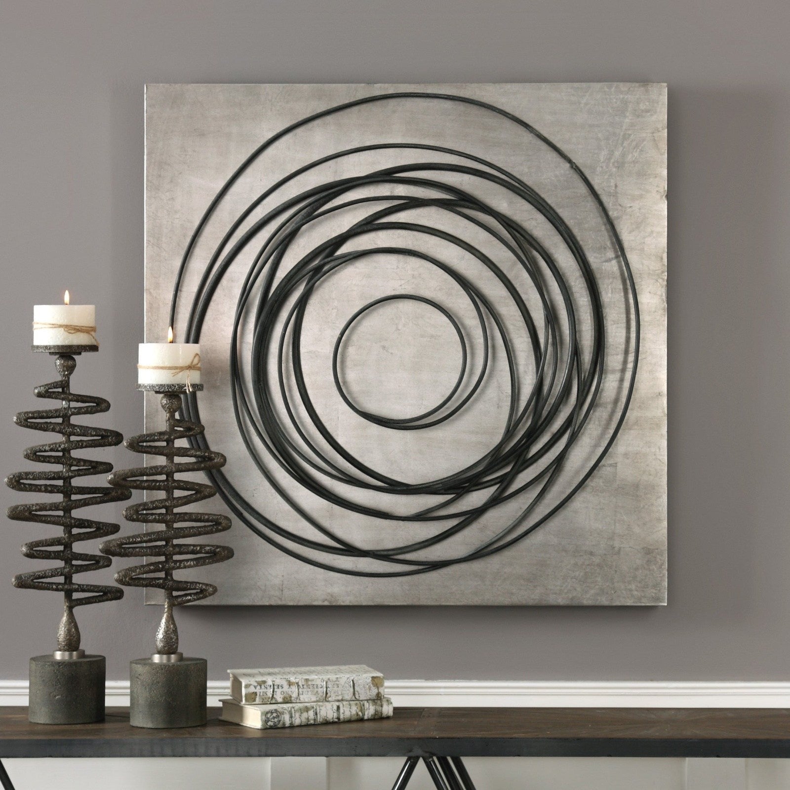 Uttermost's Whirlwind Iron Coils Wall Art 04105 features a rustic black, hand forged iron coil design attached to a metal plaque layered in silver leaf and lightly antiqued with champagne. As a result of the handcrafted craftsmanship, each piece will vary slightly. The wall art is created with advanced product engineering and packaging reinforcement for secure shipping, assuring minimal damage.