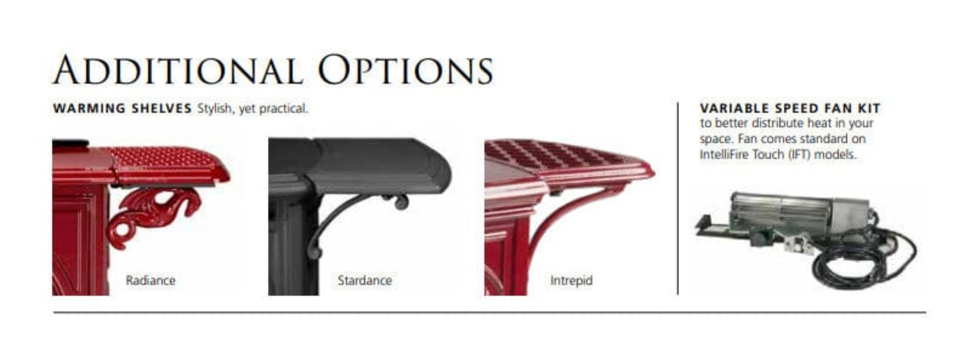 Multiple finish and control options create the stove thatâs right for your home. Vermont Castingsâ craftsmanship is on display with the Stardance. Select from the standard touchscreen remote or optional IntelliFire app, for the solution that fits your life.