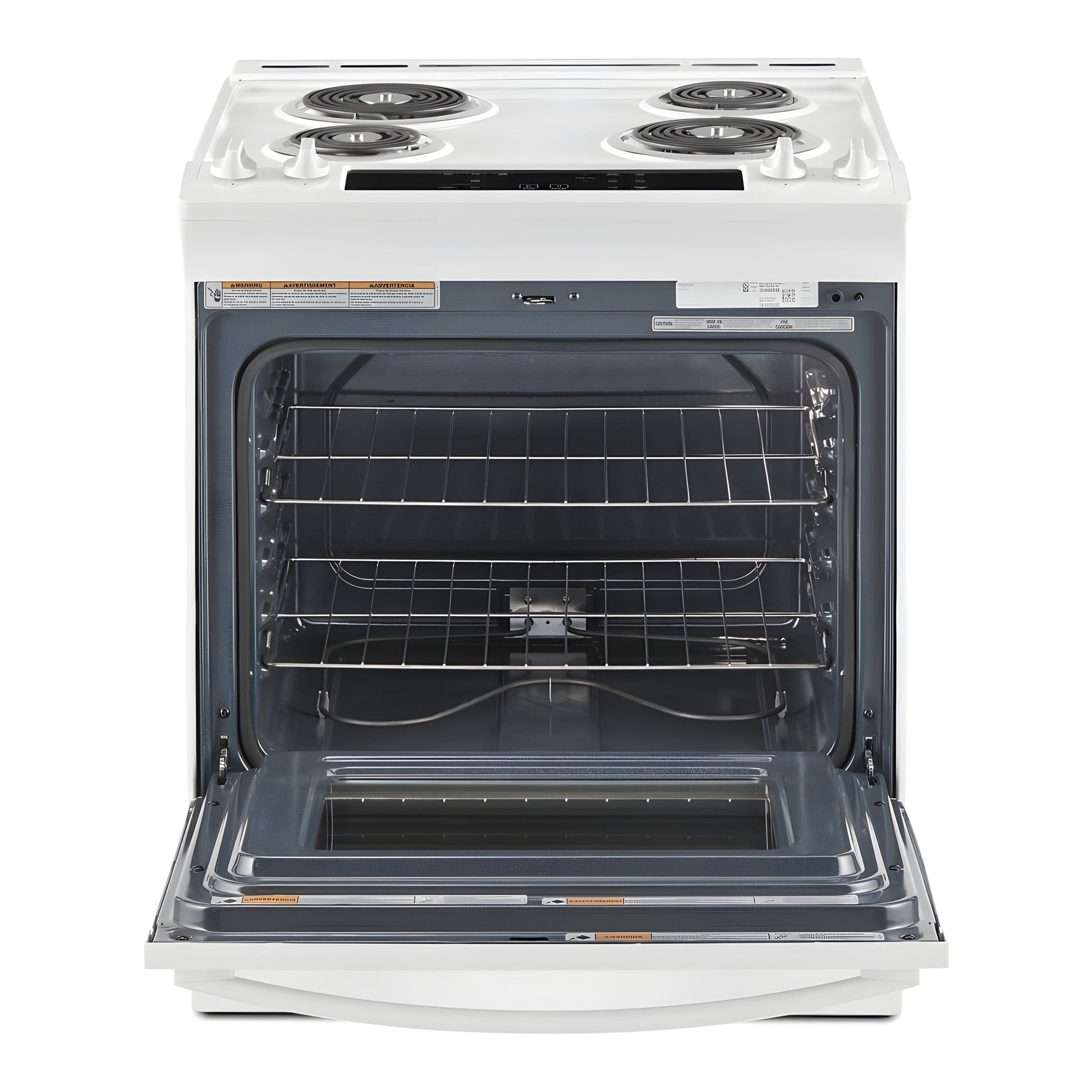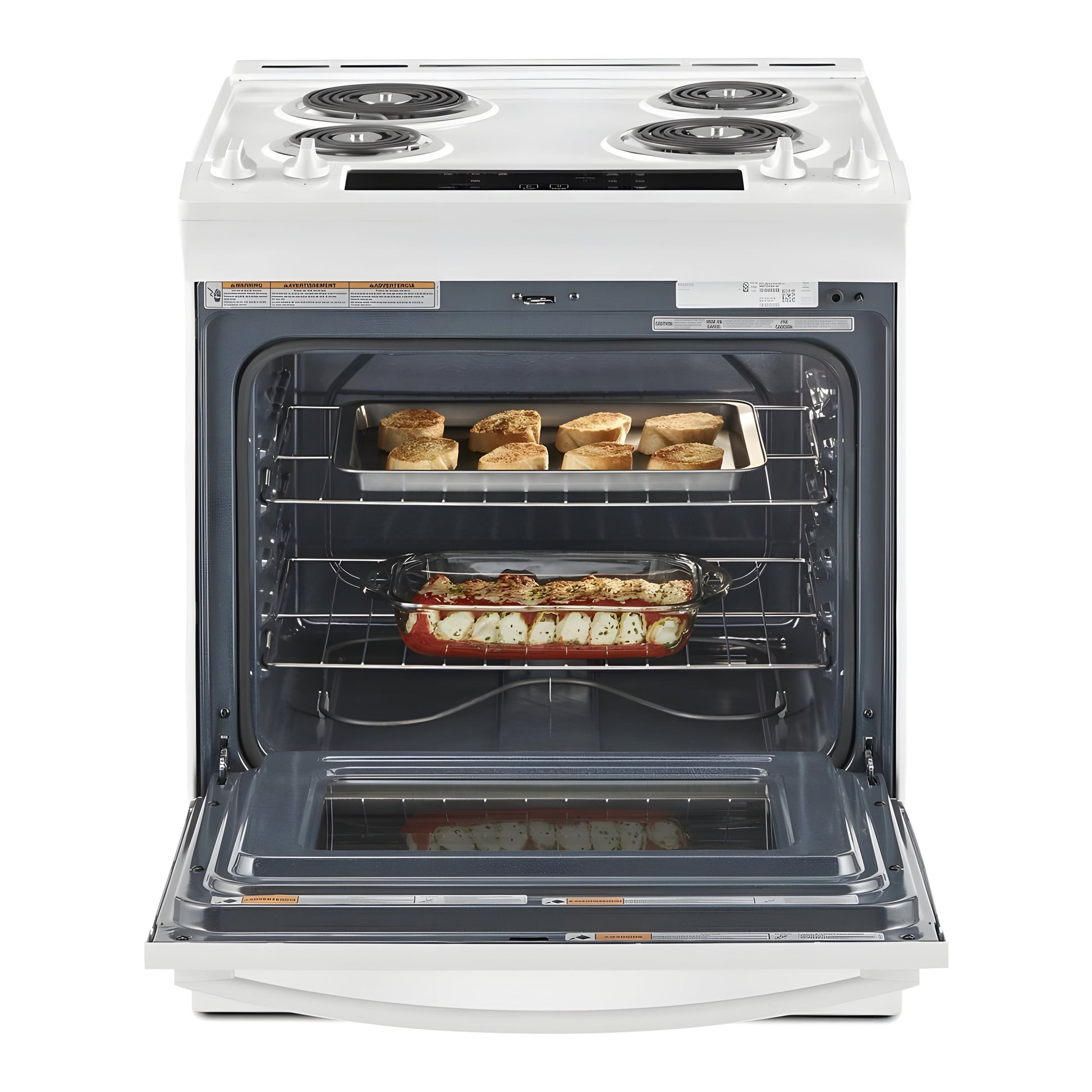 A: This electric range offers 4.8 cu. ft. of oven space, providing sufficient room for baking, roasting, and preparing large meals.